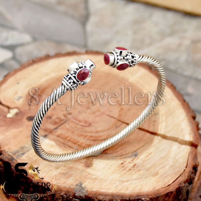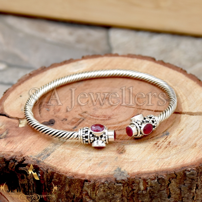 Indian Ruby Bracelet, 925 Sterling Silver, Handmade Bracelet, Bangle Cuff