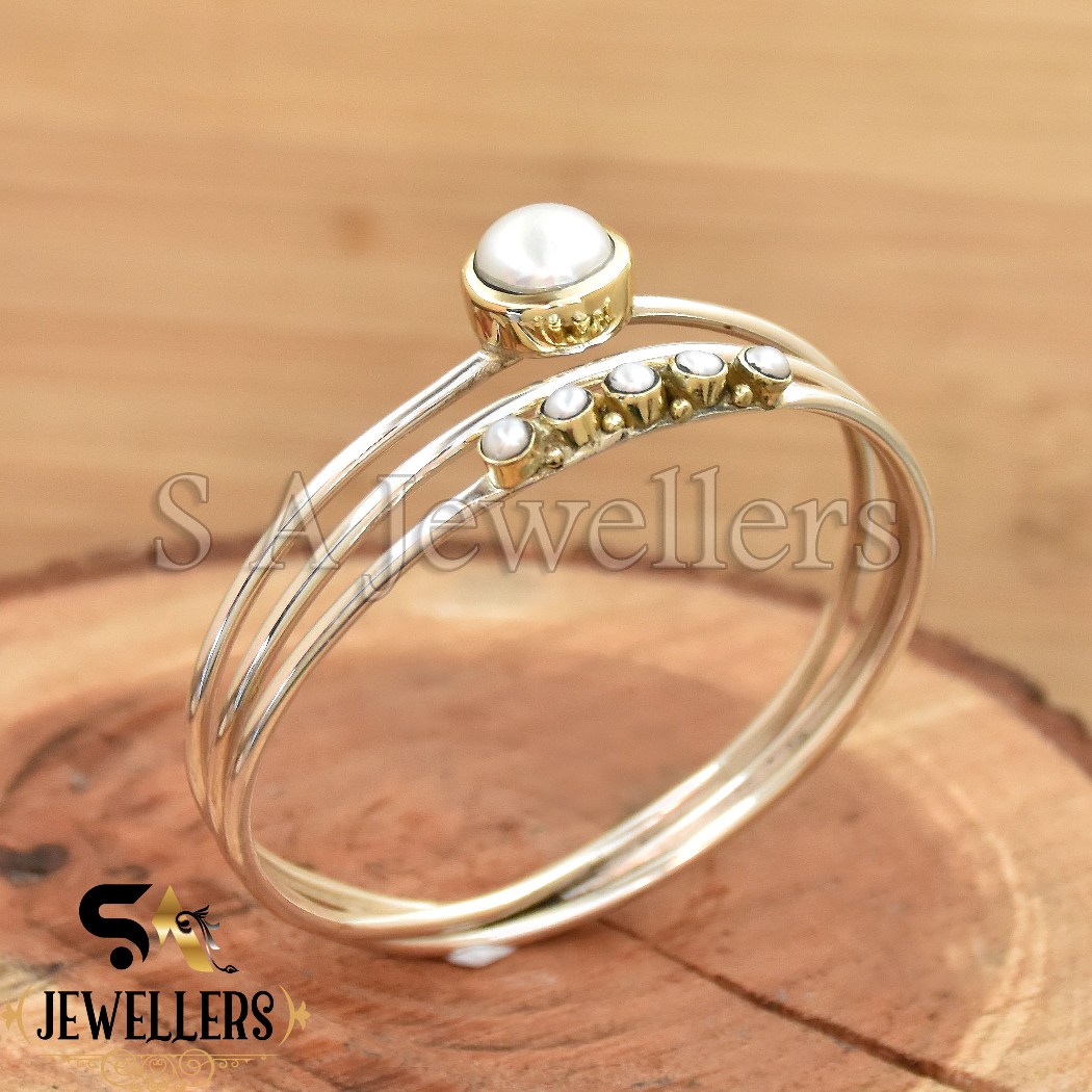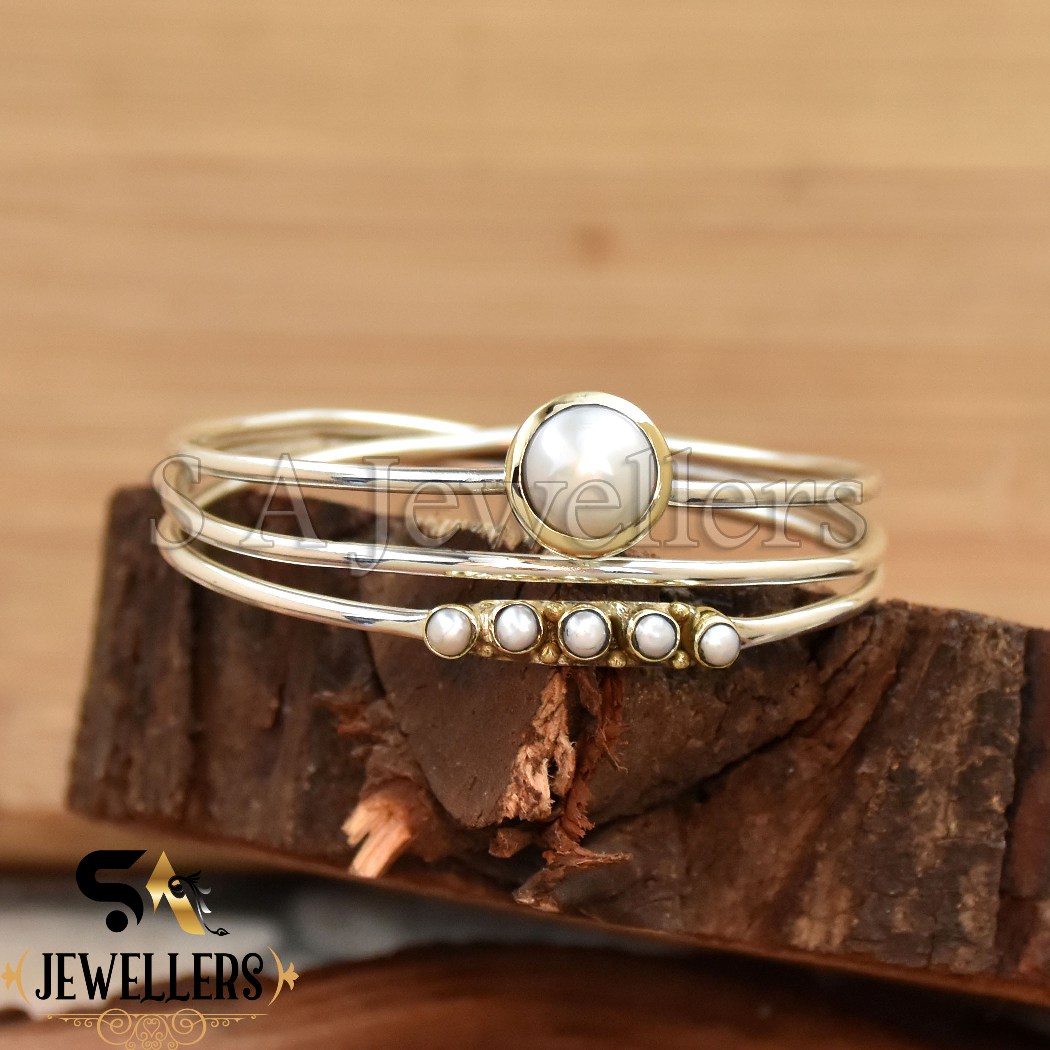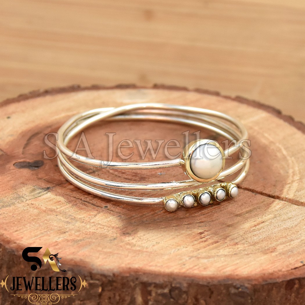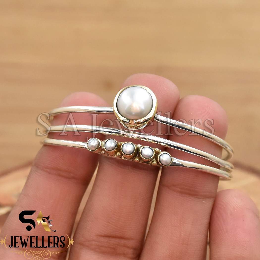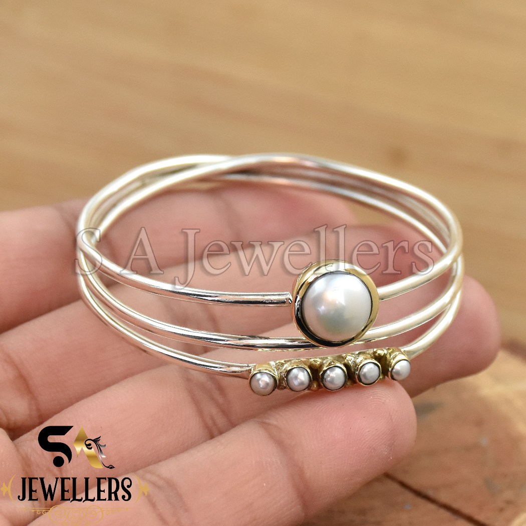 Mother of Pearl Bangle, 925 Sterling Silver Cuff Bracelet, Tow Tone Bracelet,