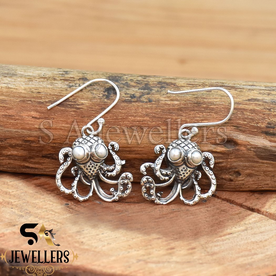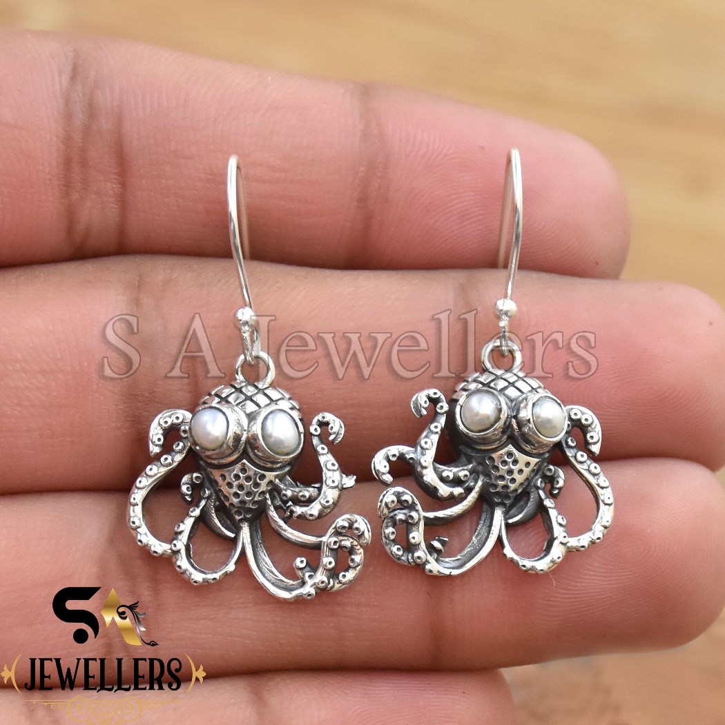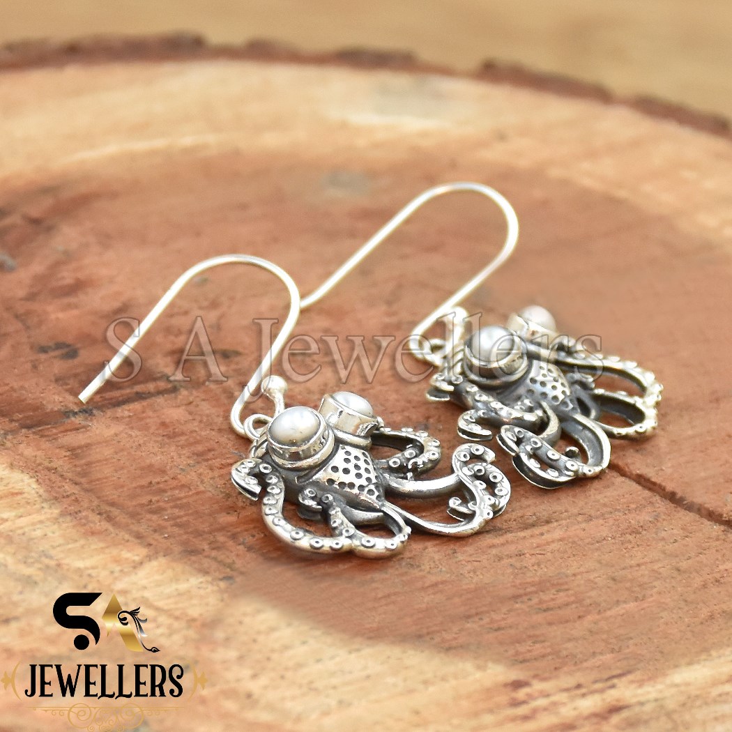 925 Sterling Silver Earring, Octopus Earring, Mother Of Pearl Earring,
