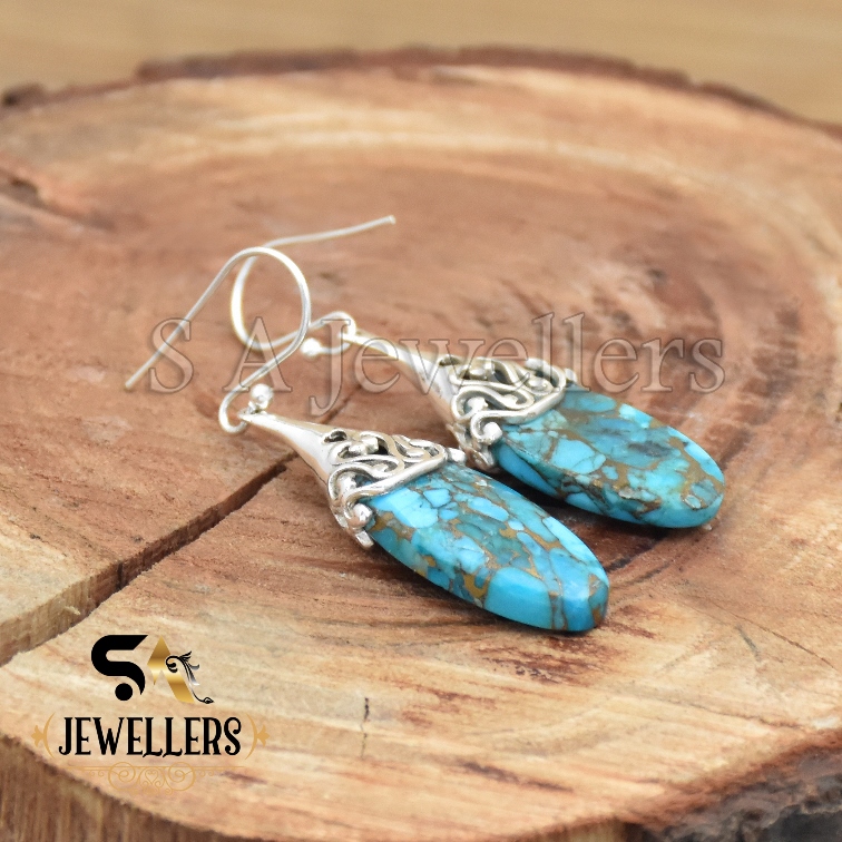 Blue Copper Earring, 925 Sterling Silver Earring, Turquoise Jewelry Earing,