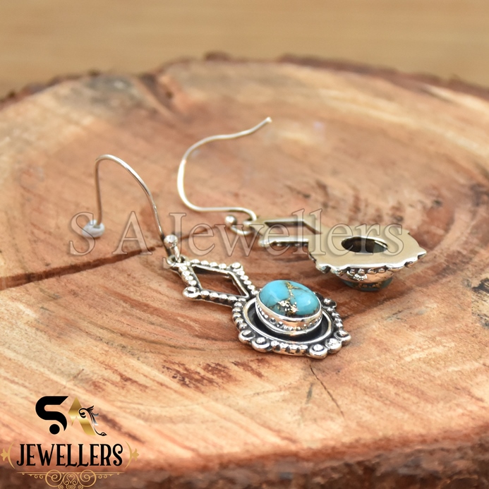 Blue Copper Turquoise Earring, 925 Sterling Silver Earring, Handmade Jewelry