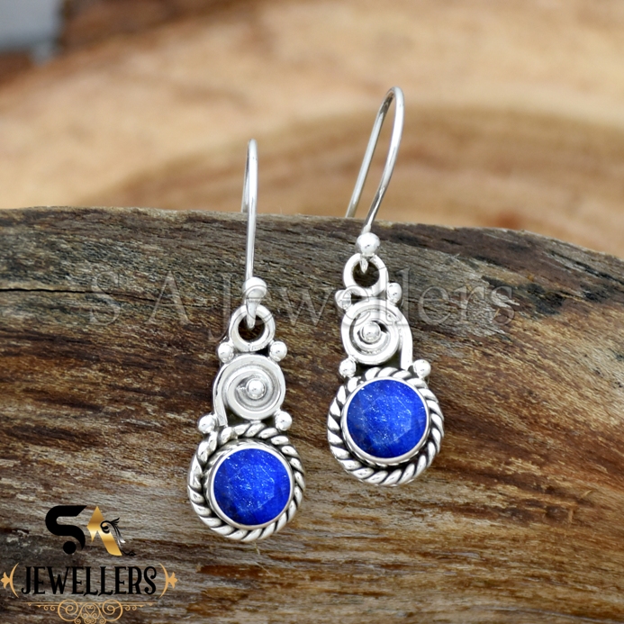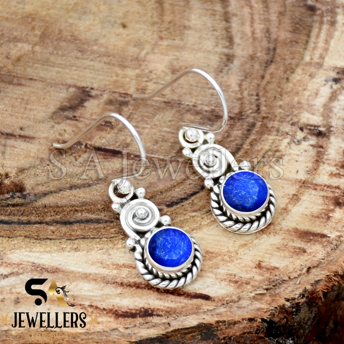 Indian Blue Sapphire Earring, 925 Sterling Silver Earring, Birthday Jewelry