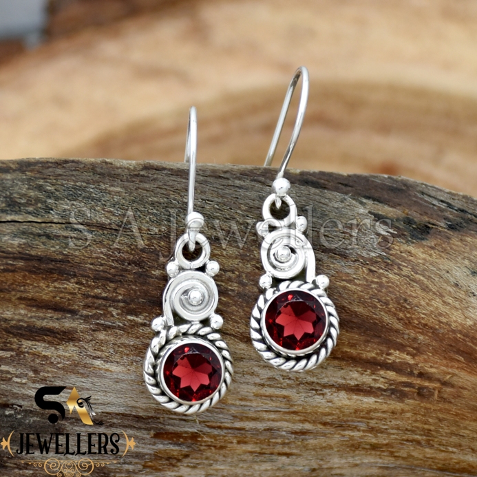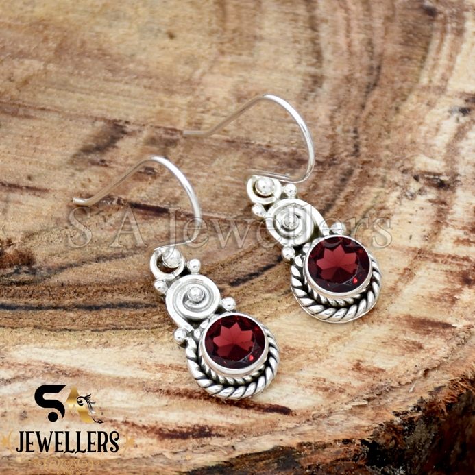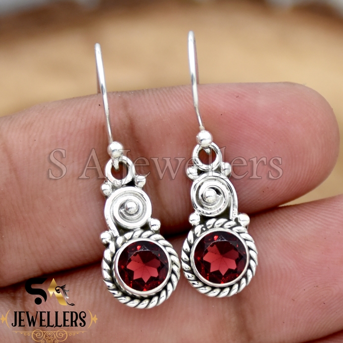 Natural Garnet Earrings, 925 Sterling Silver Earring, Women’s Earring