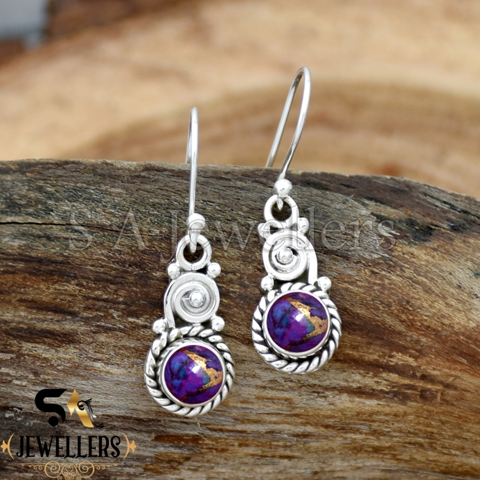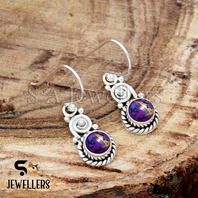 Be the first to review “Wholesale Purple Copper Turquoise Earrings, 925 Sterling Silver Earring,”
