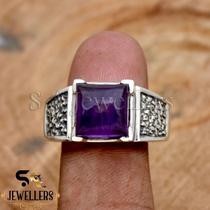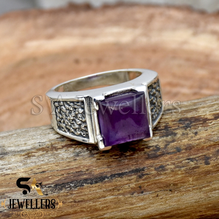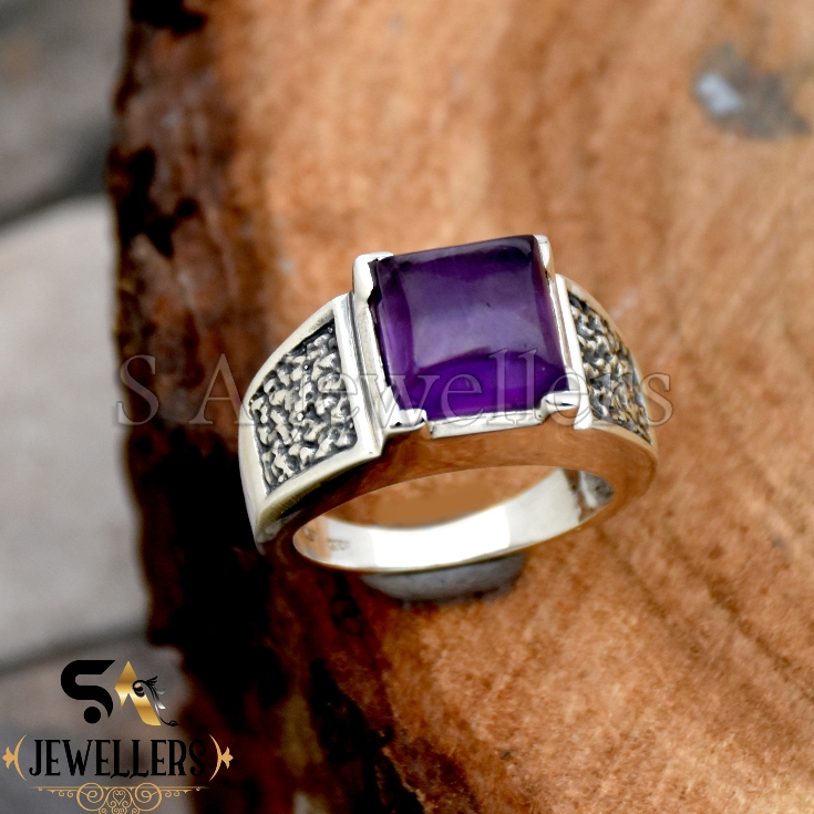 Amethyst Men’s Ring, 925 Sterling Silver Ring,