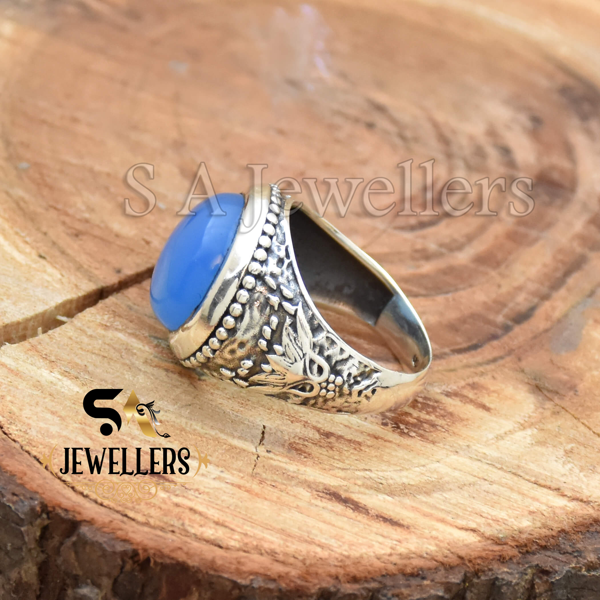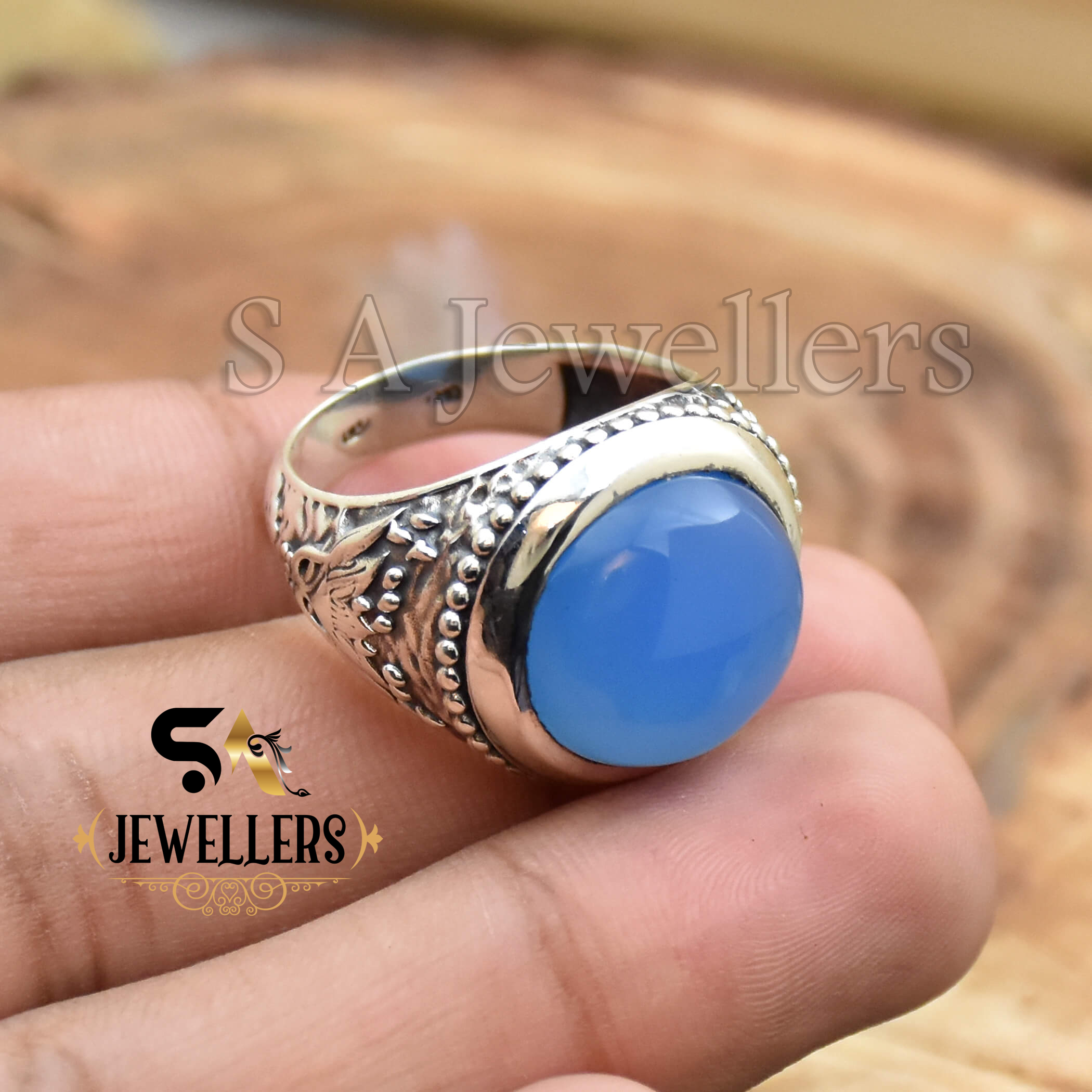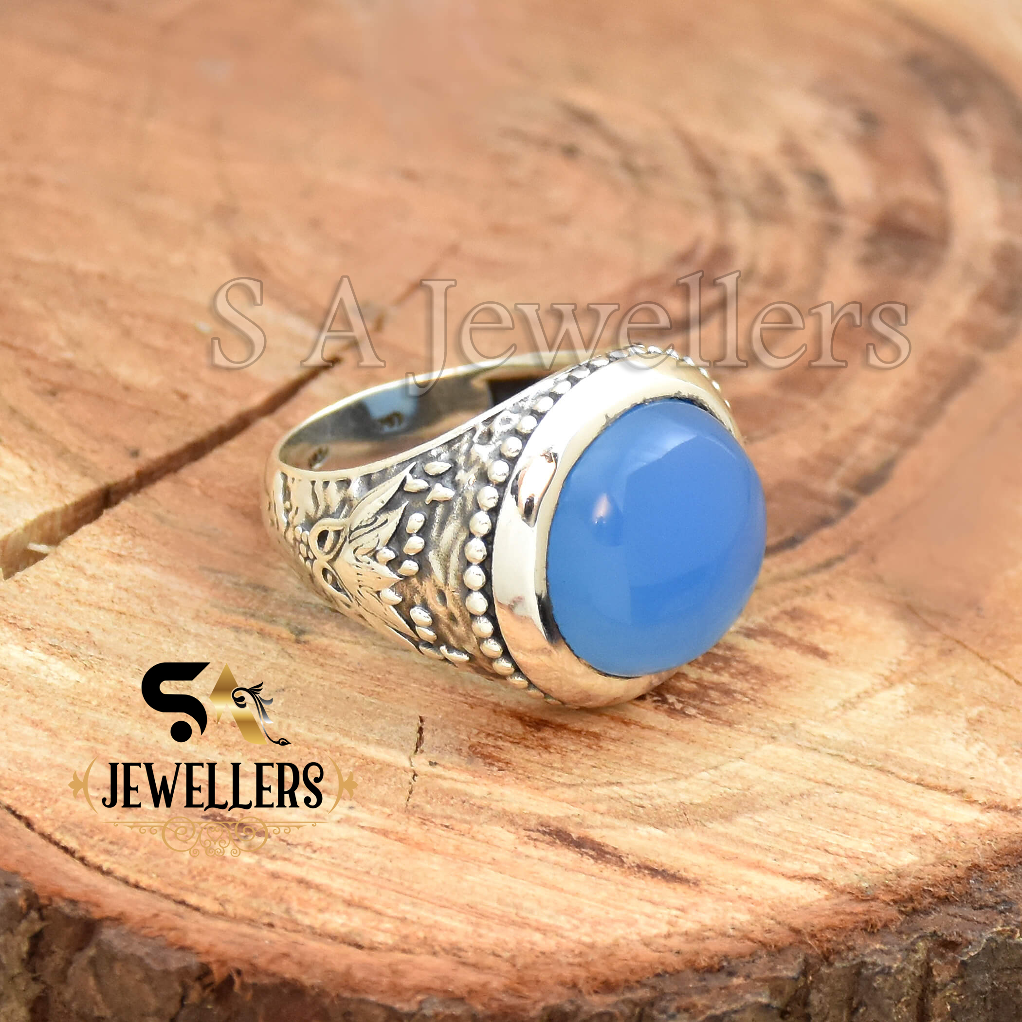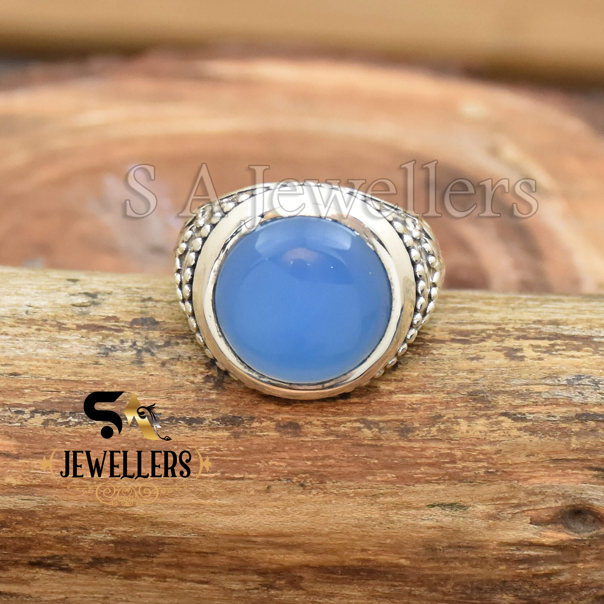 Blue Chalcedony Men’s Ring, 925 Sterling Silver Ring, Statement Ring, Handmade Jewelry, Textured Ring,