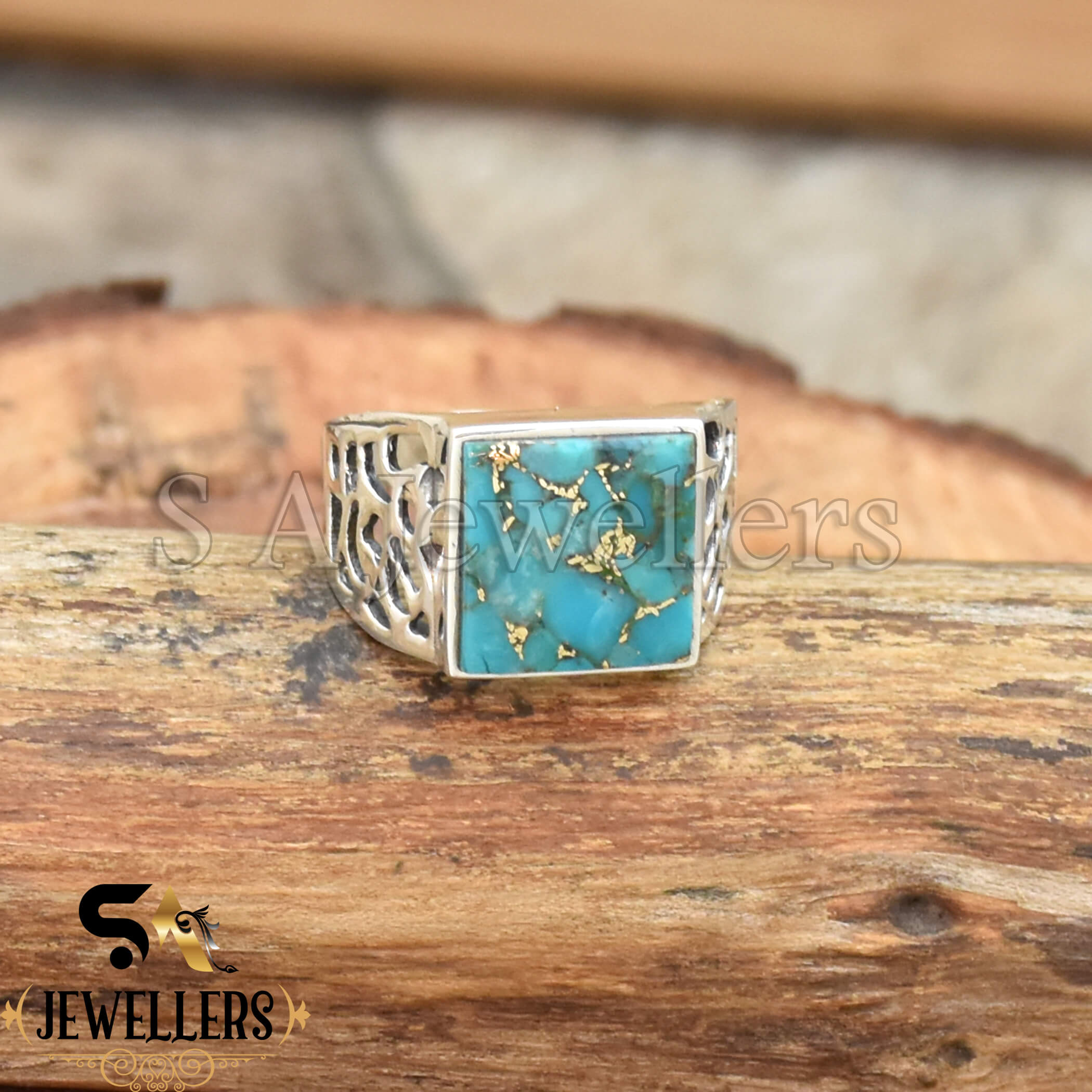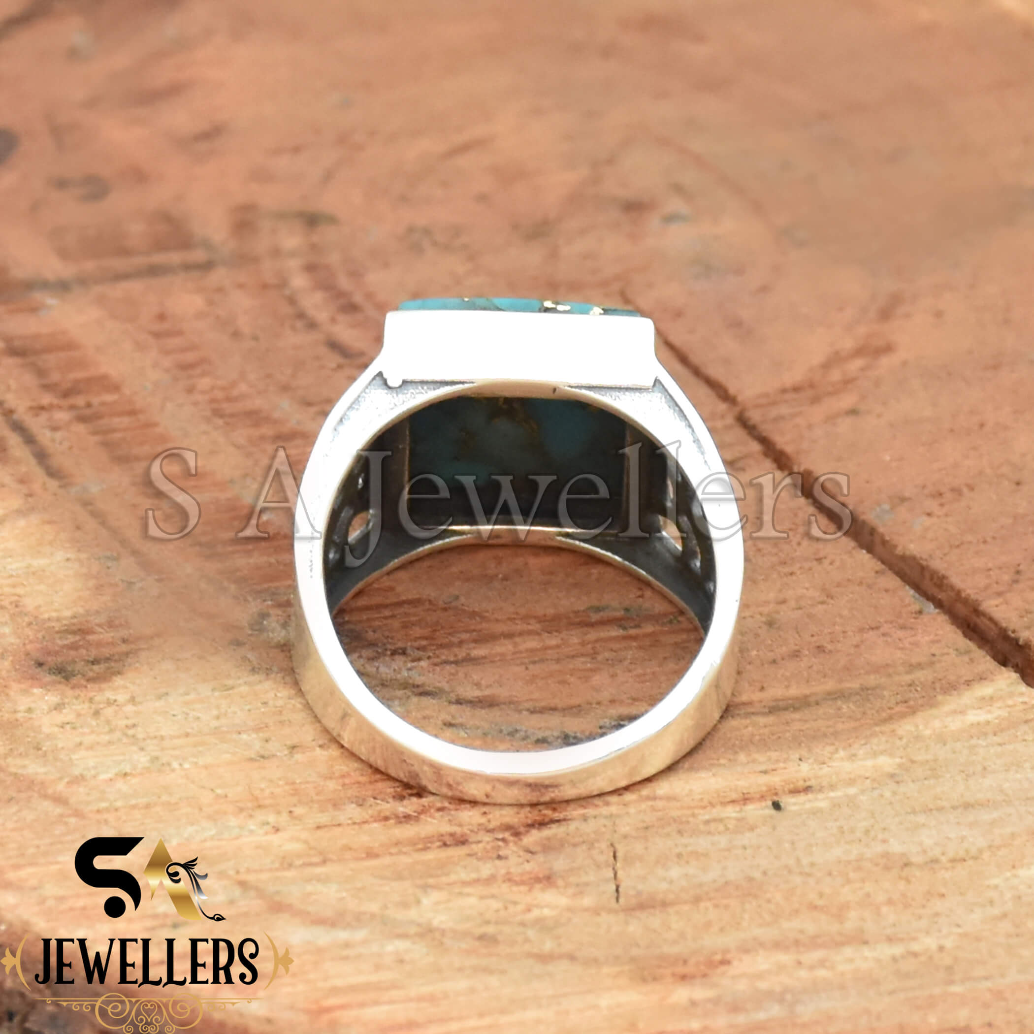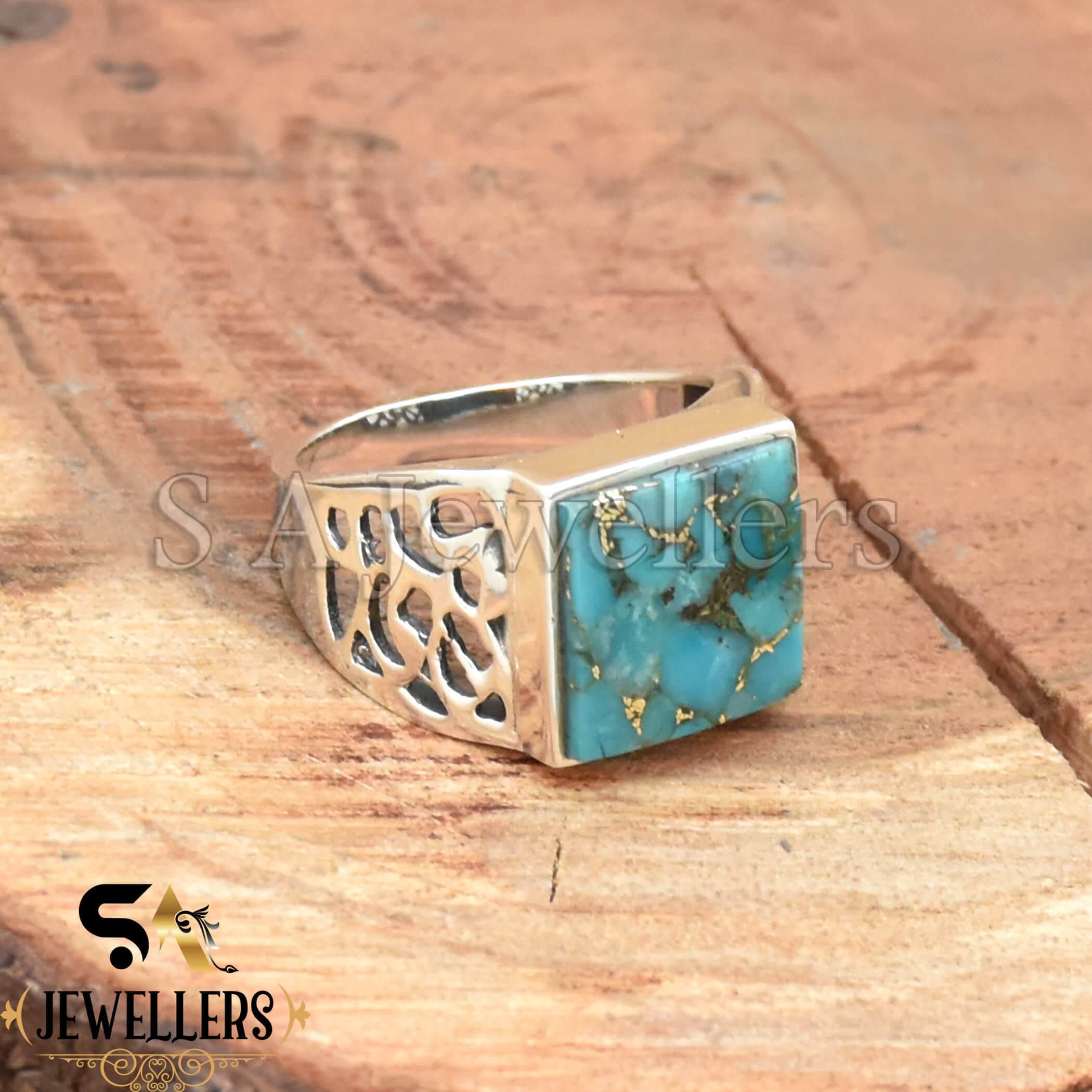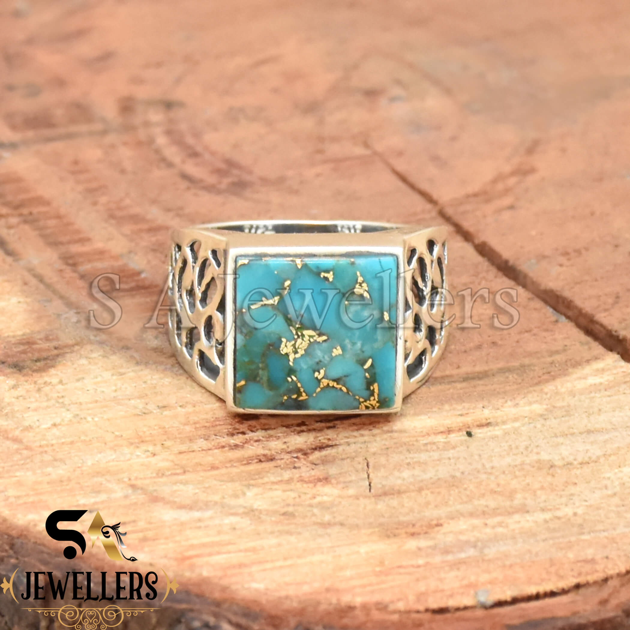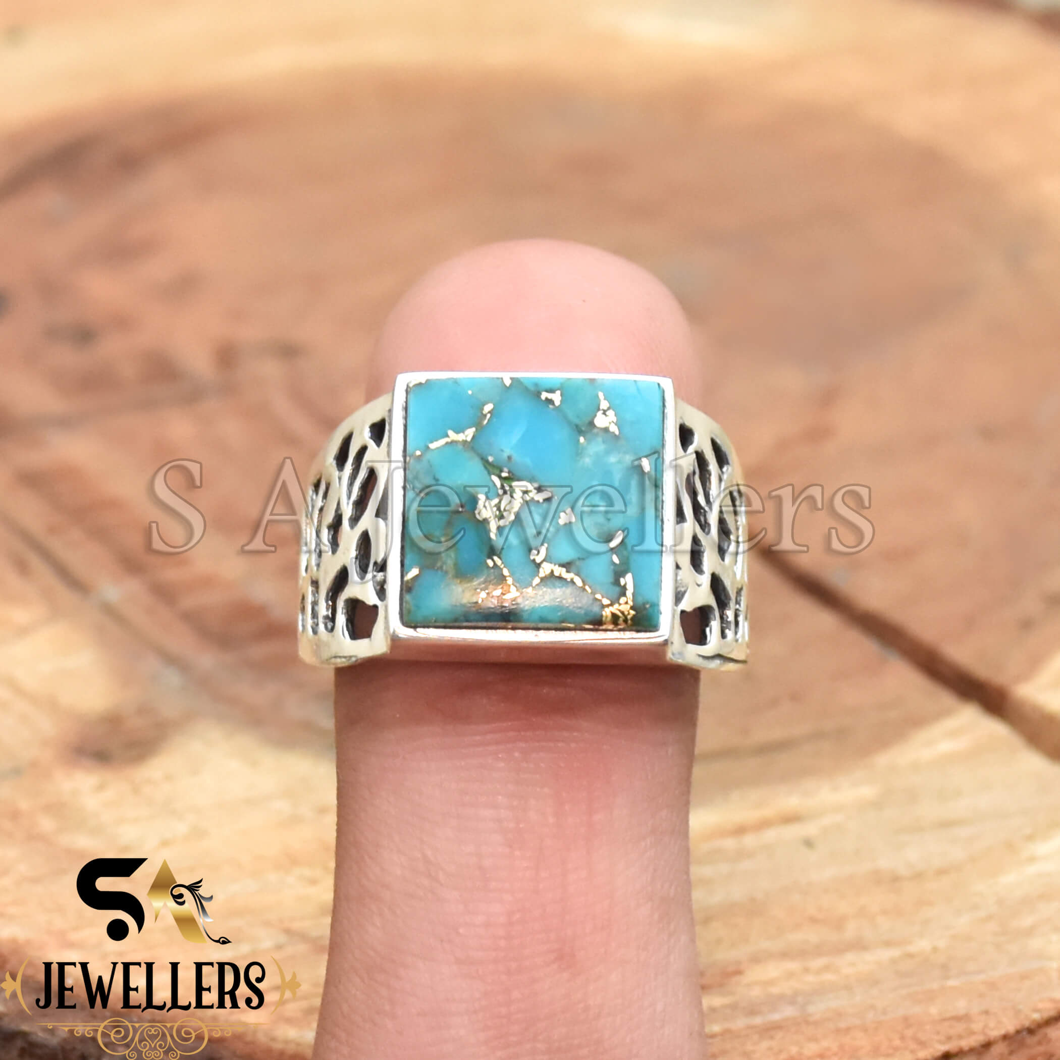 Blue Copper Turquoise Men’s Ring, 925 Sterling Silver Ring, Statement Ring, Handmade Jewelry, Gift For Her