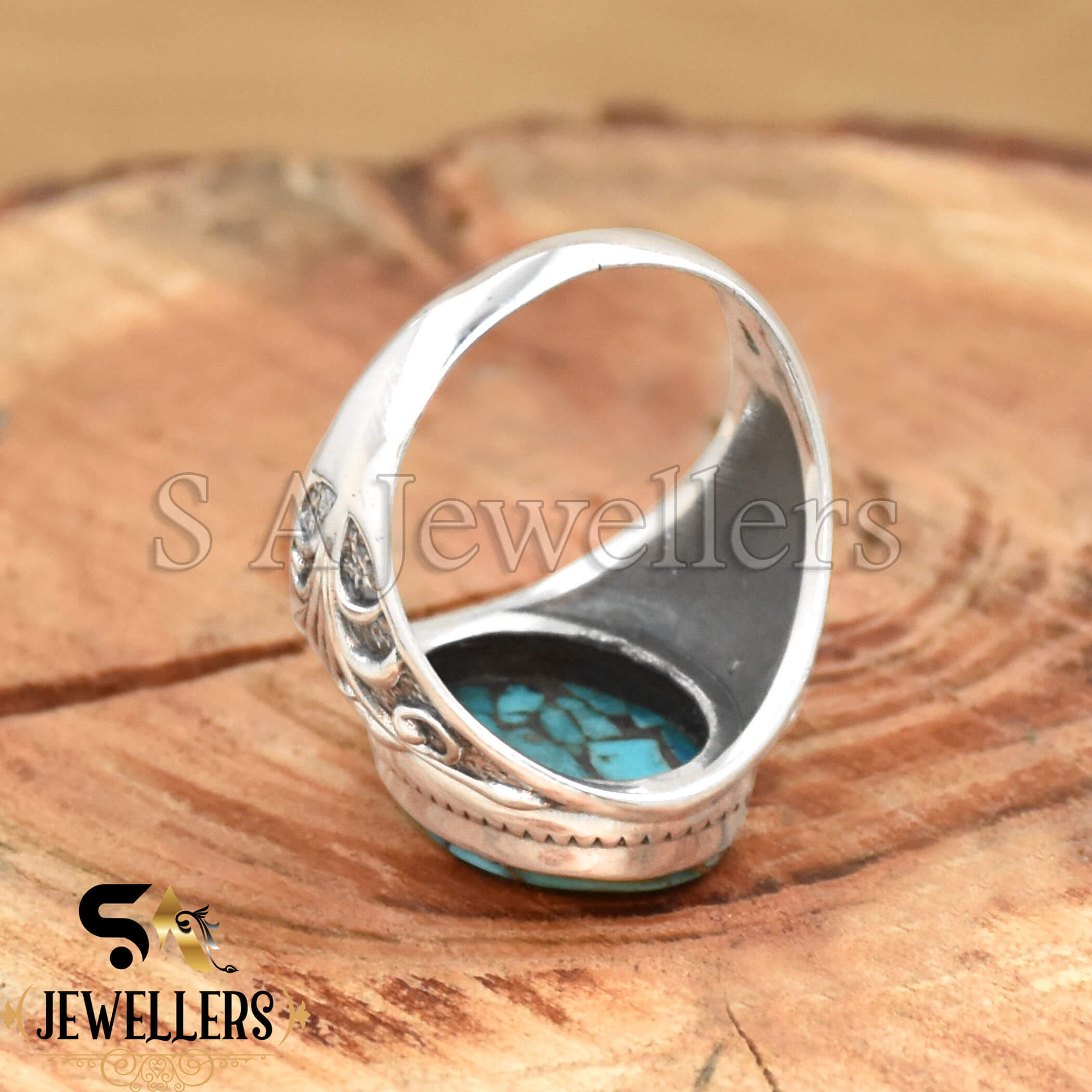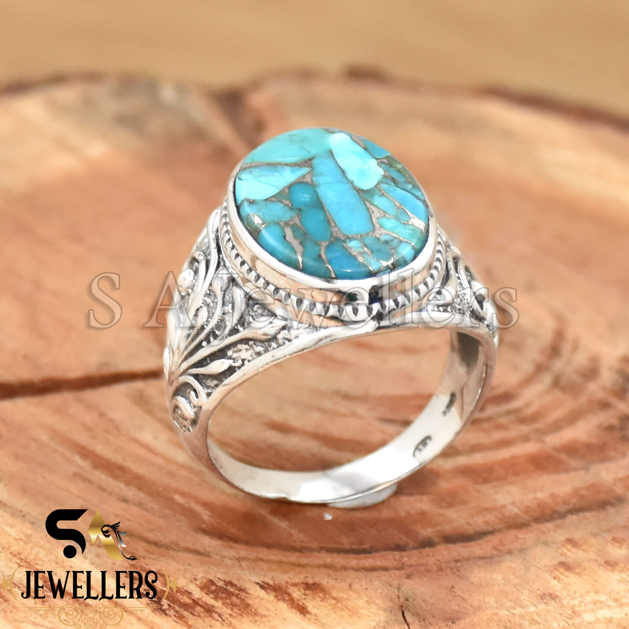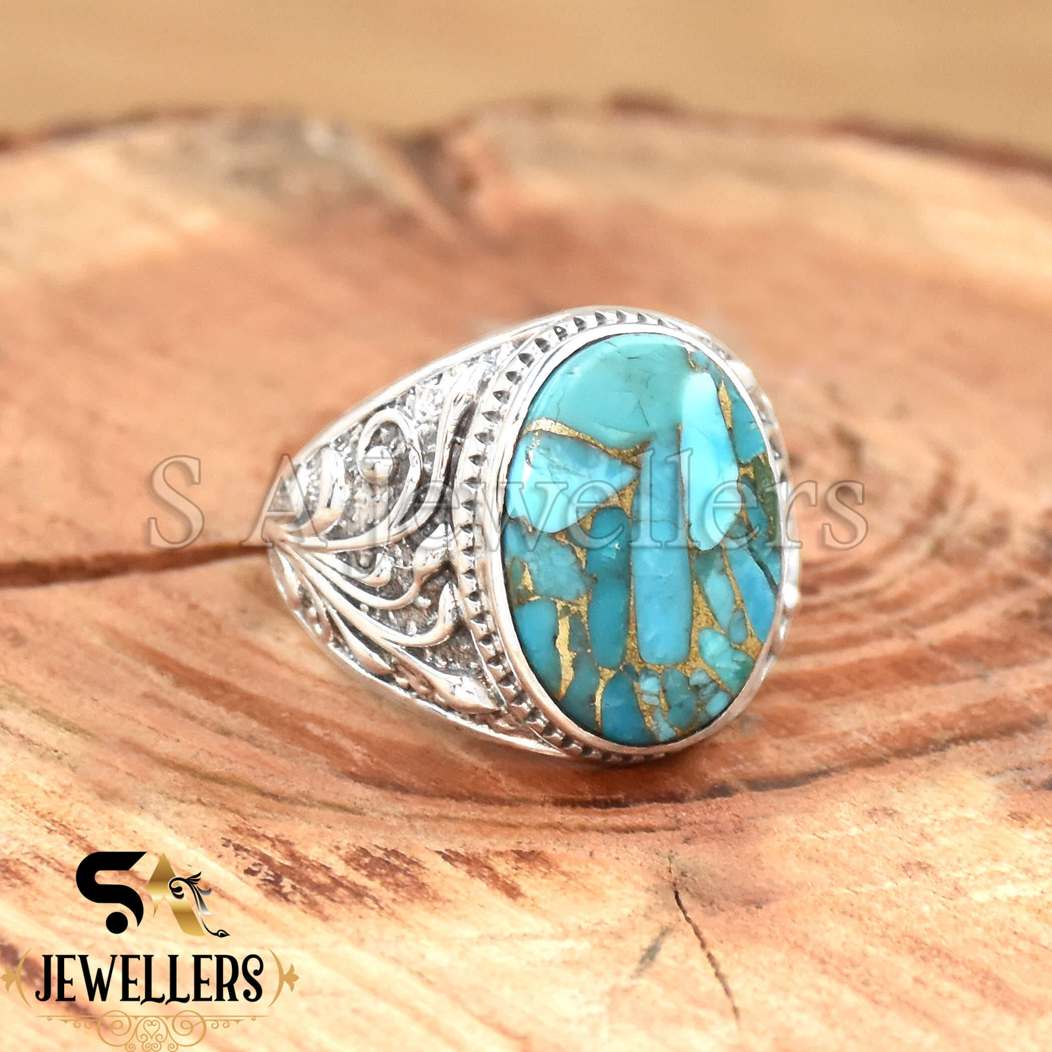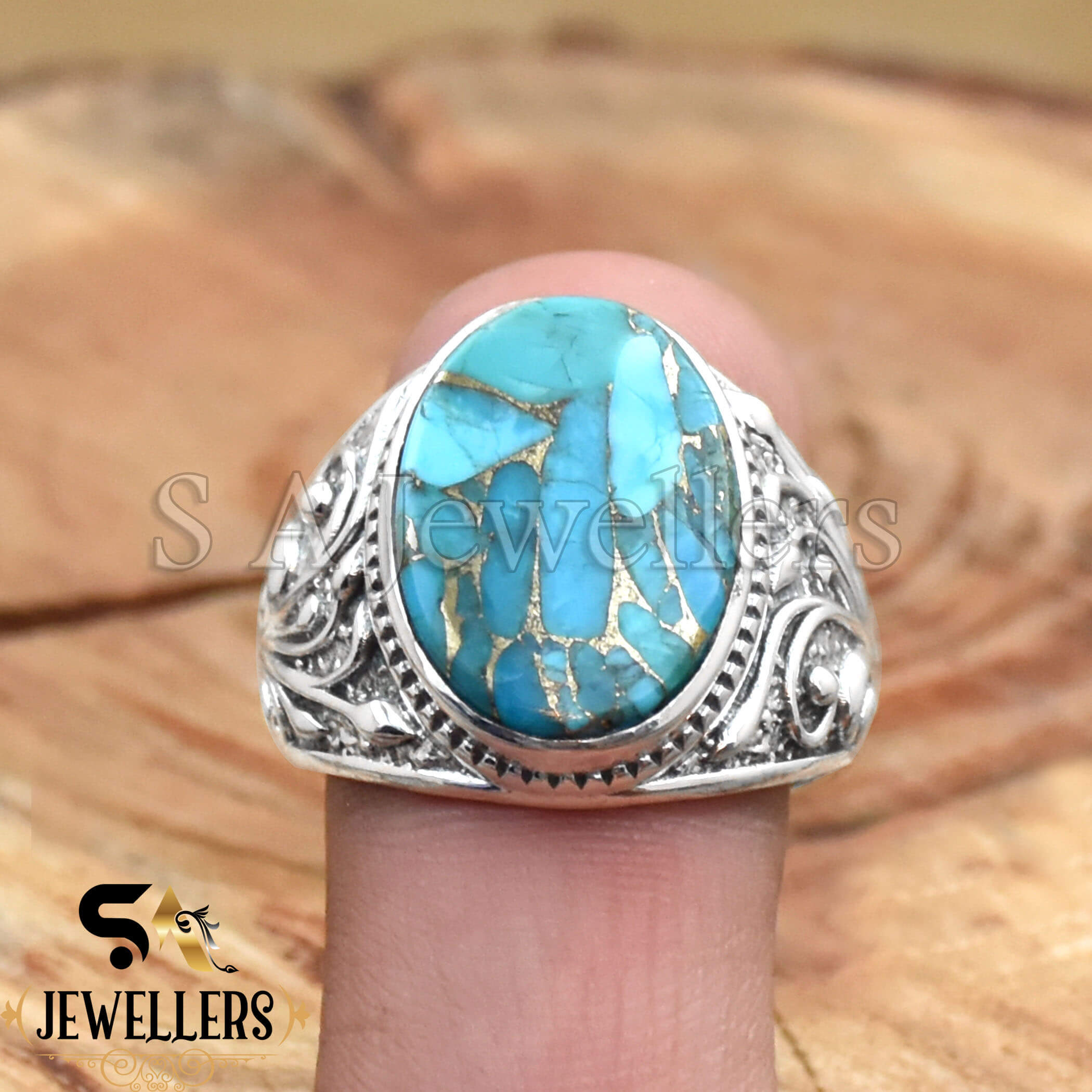 Blue Copper Turquois Men’s Ring, 925 Sterling Silver Ring, Boho Ring, Statement Ring, Stylish Silver Ring,