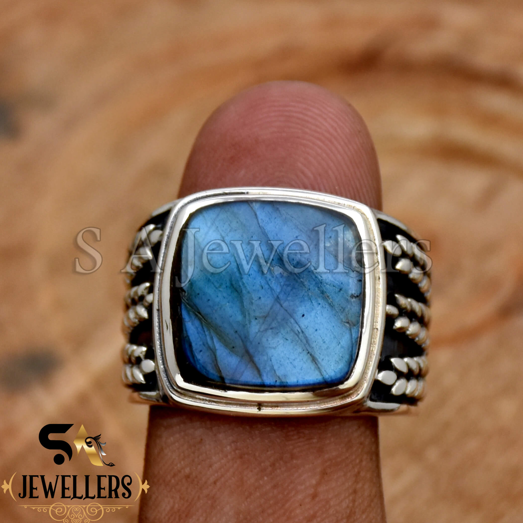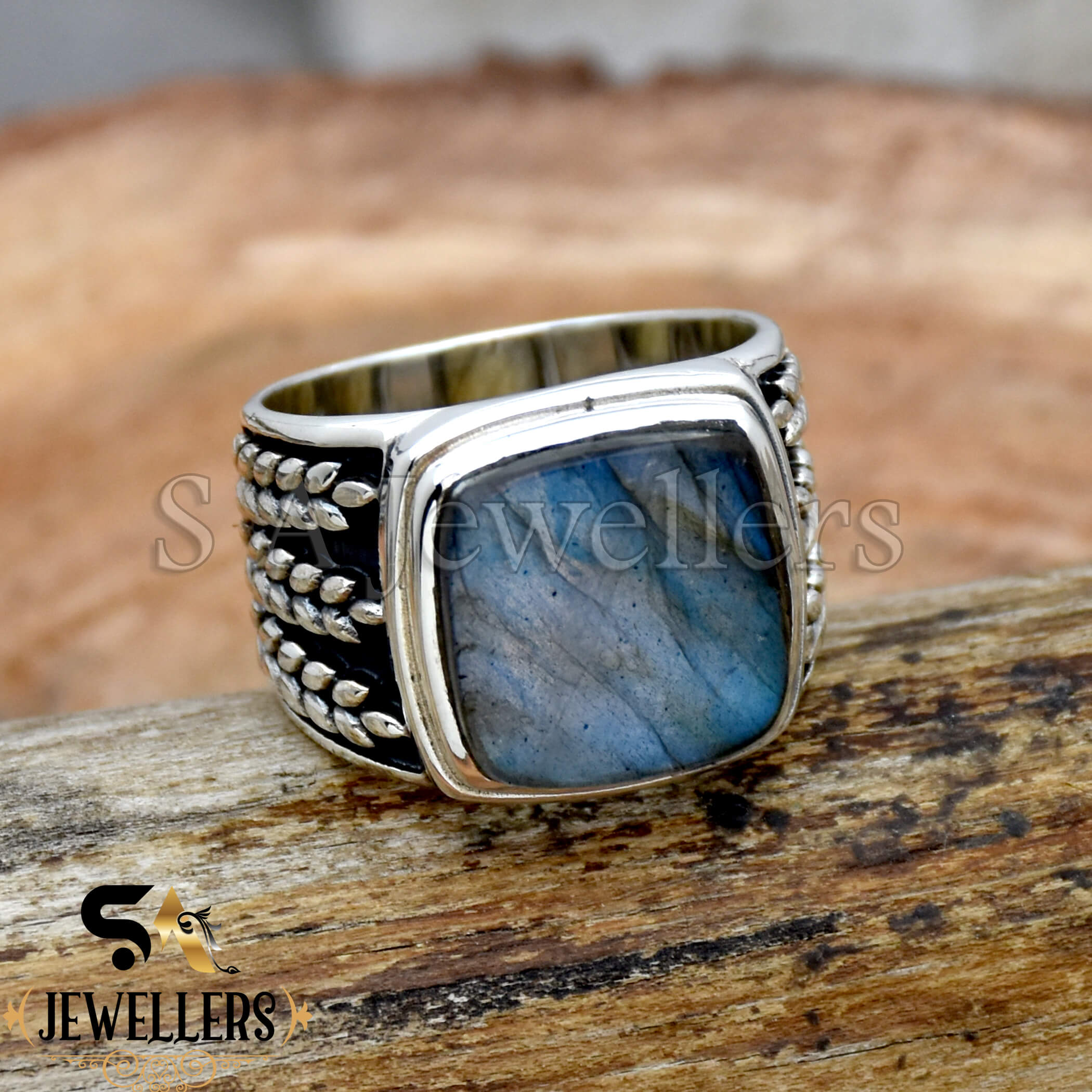 Labradorite Men’s Ring, 925 Sterling Silver Ring, Statement Ring, Handmade Jewelry, Gift For Her
