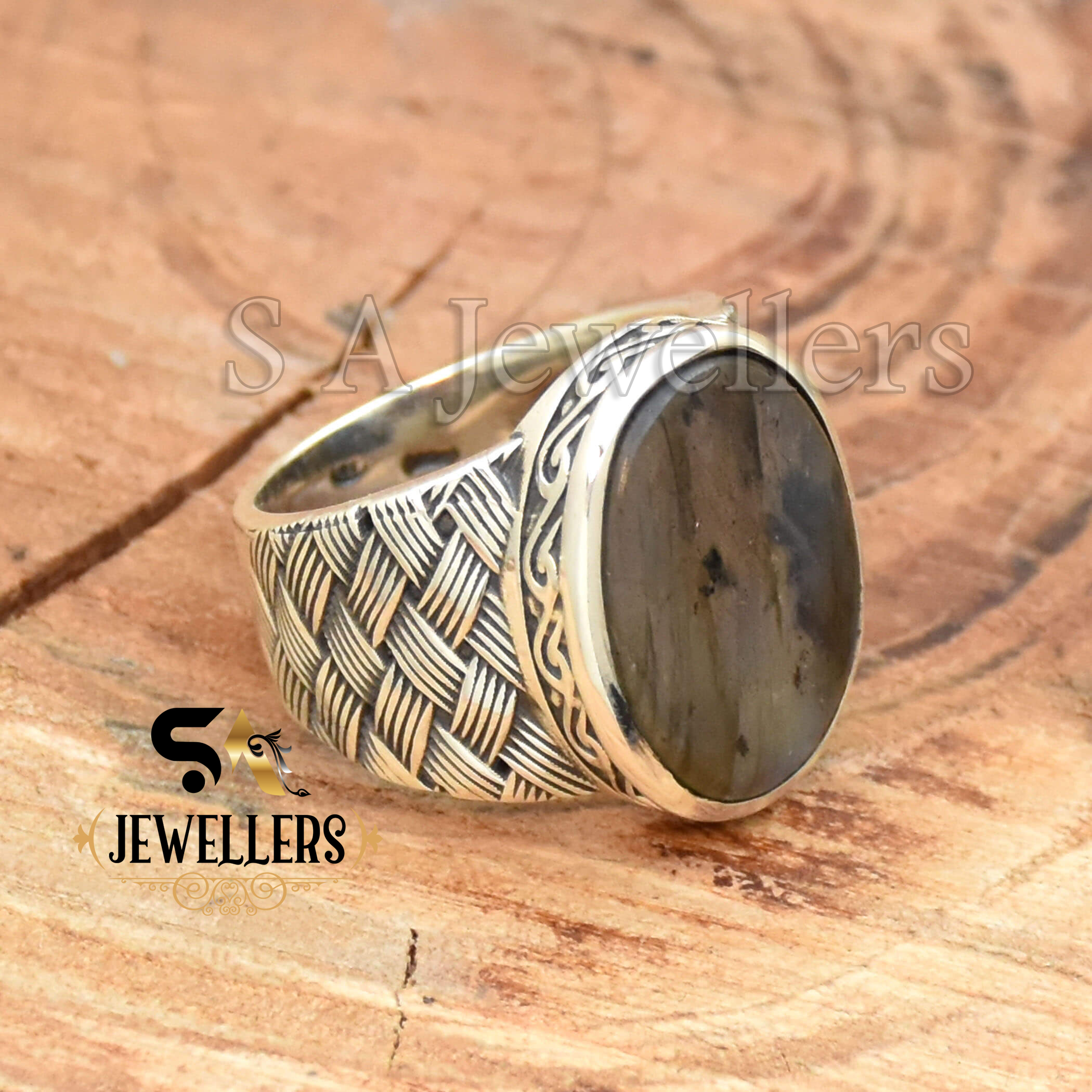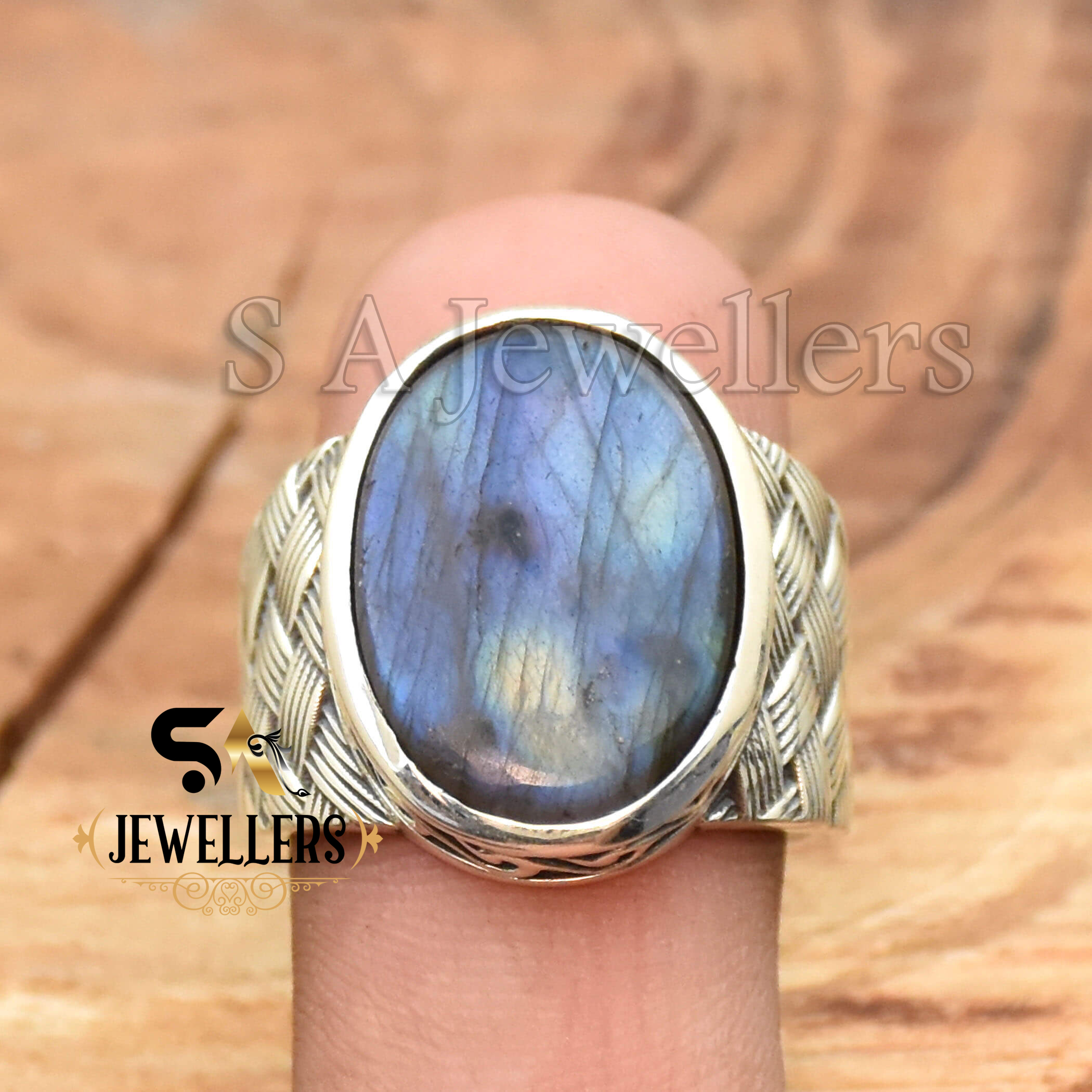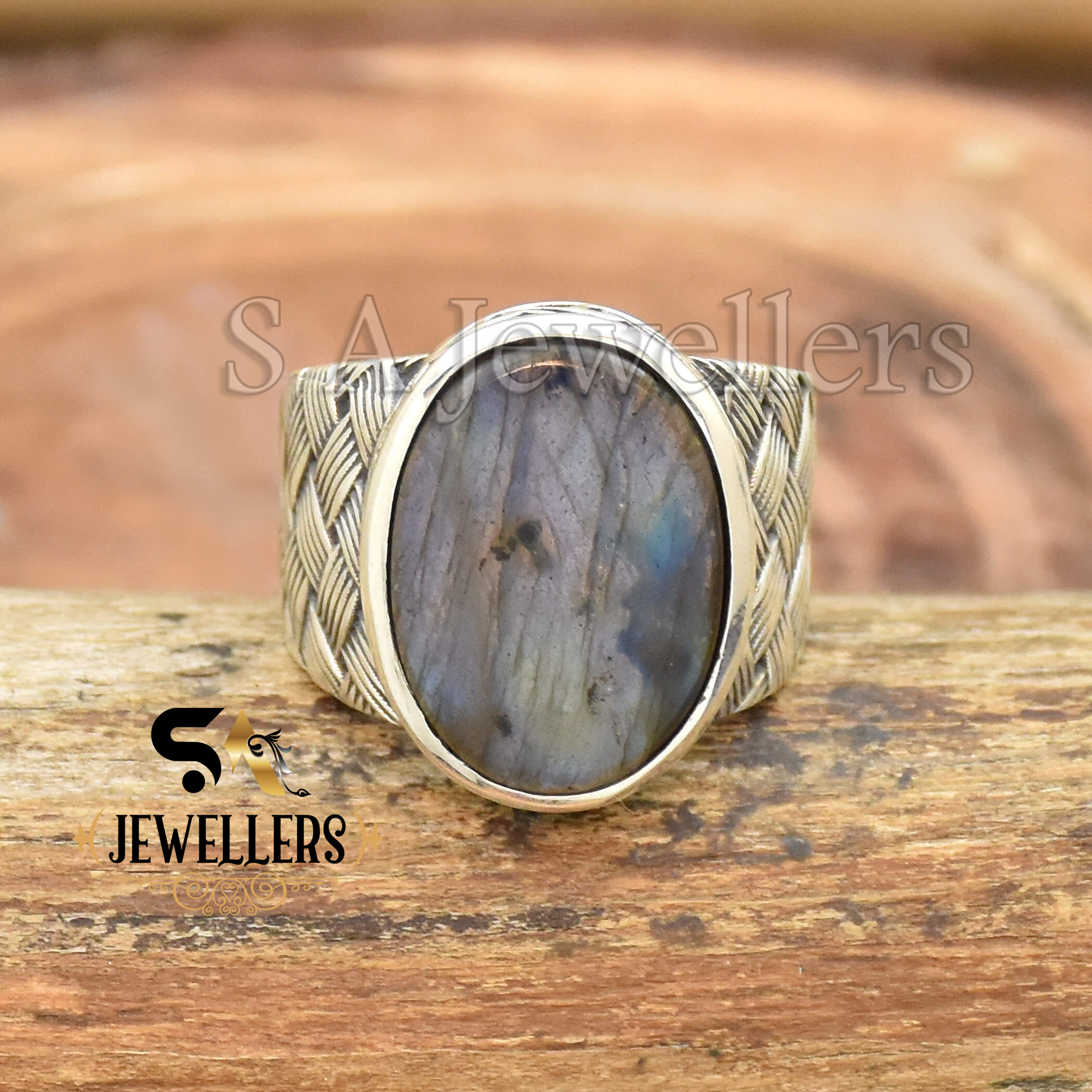 Labradorite Men’s Ring, 925 Sterling Silver Ring, Statement Ring, Handmade Jewelry, Textured Ring,