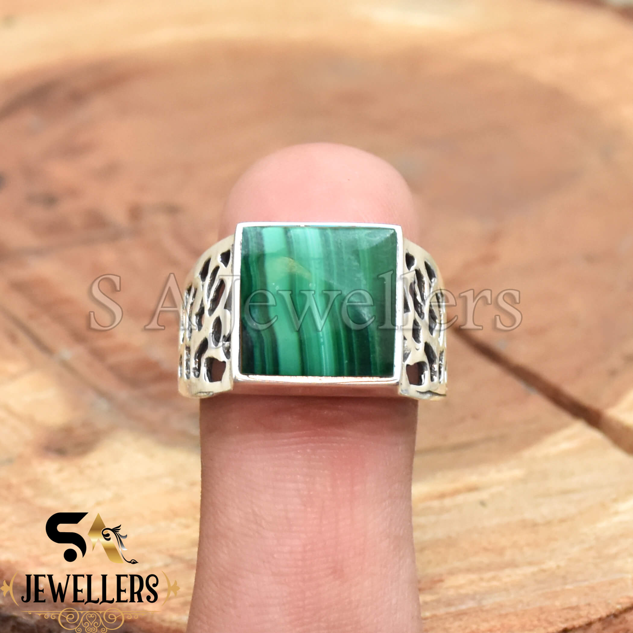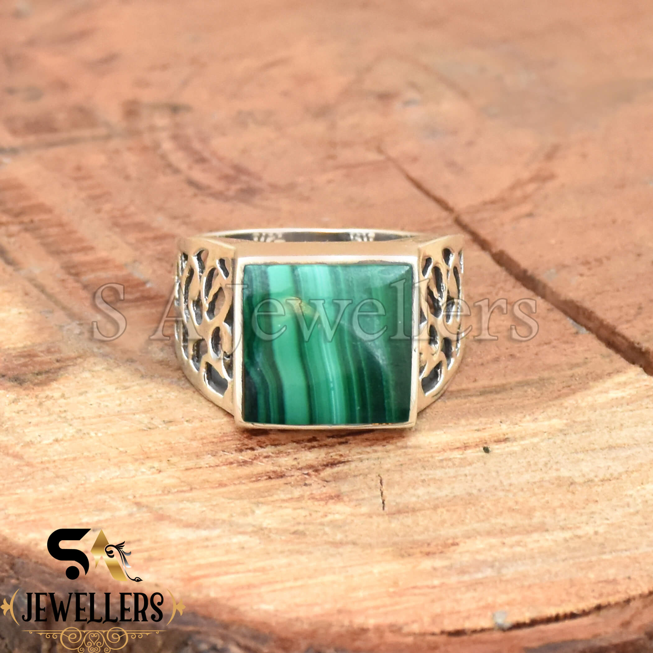 Malachite Men’s Ring, 925 Sterling Silver Ring, Gemstone Men’s Ring, Gift For Her