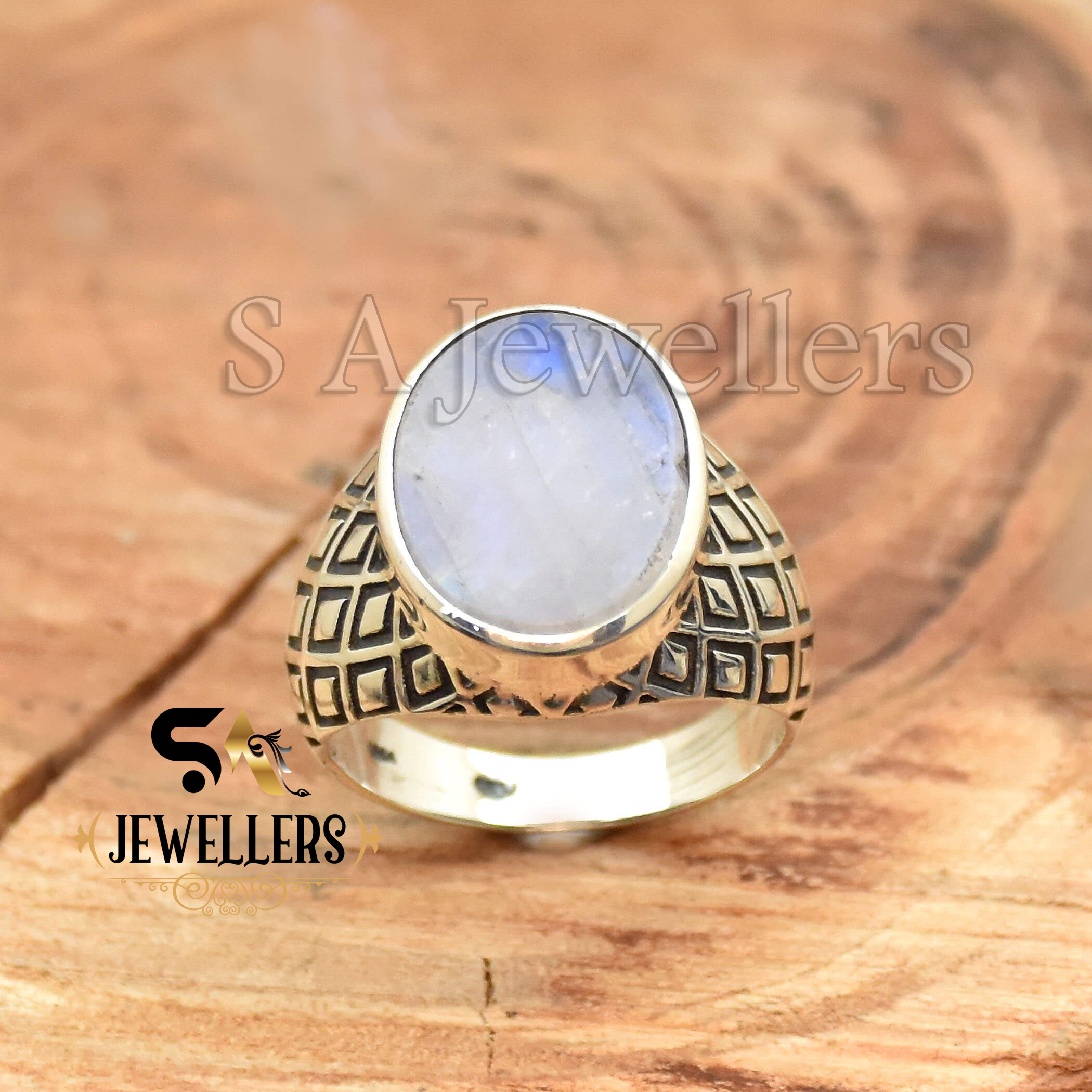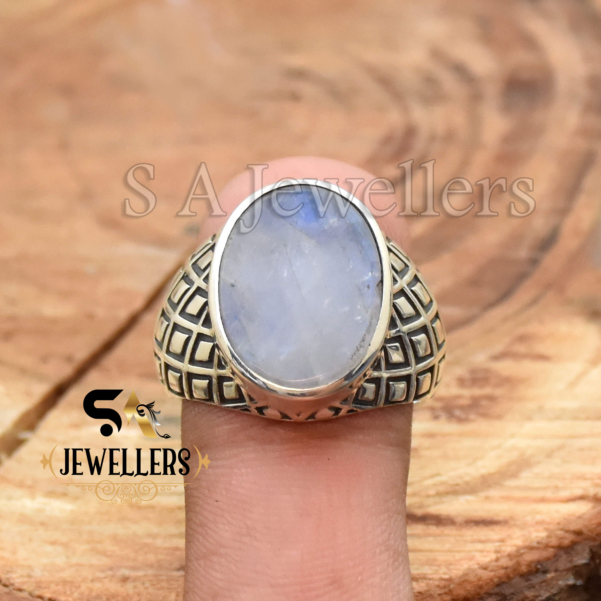 Rainbow Moonstone Men’s Ring, 925 Sterling Silver Ring, Statement Ring, Gift For Her