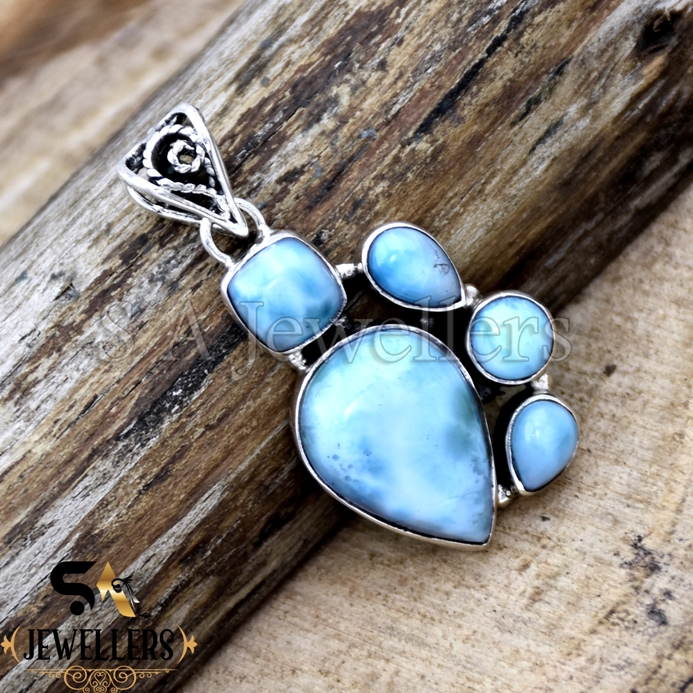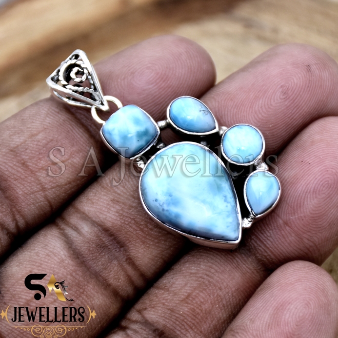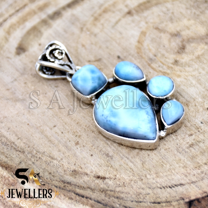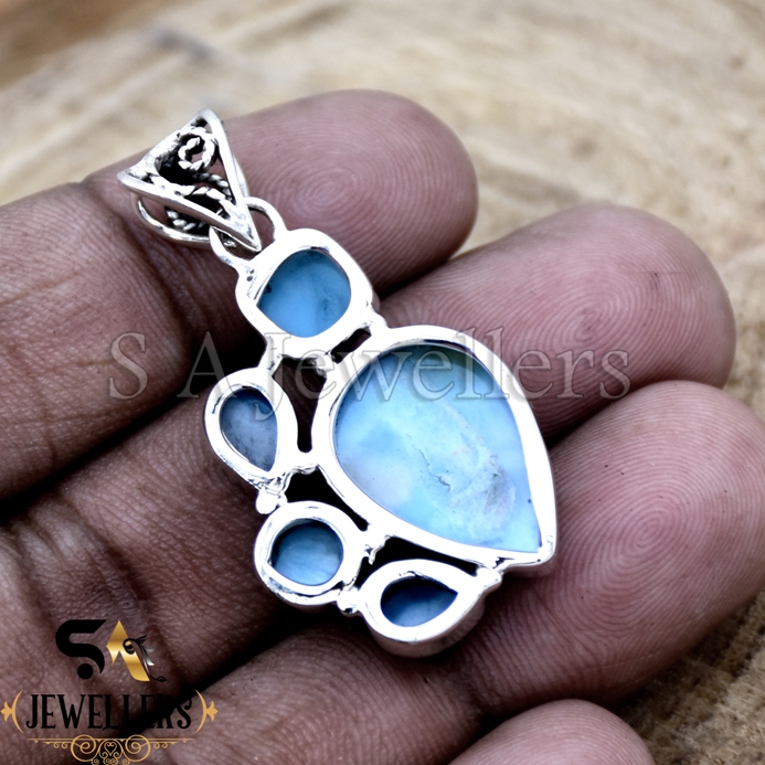 Natural Larimar Silver Pendant, 925 Sterling Silver Pendant, Jewelry for girls, Handmade Pendant