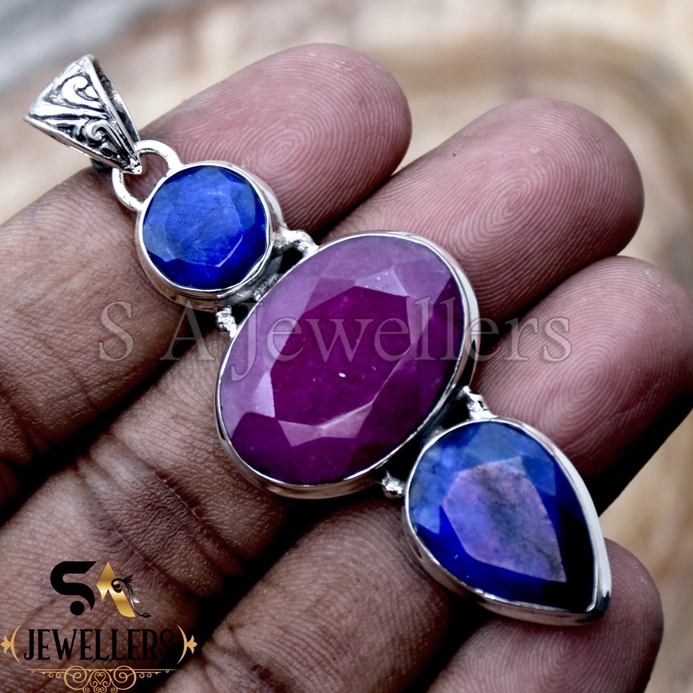 Top Quality Indian Ruby Pendant, 925 Sterling Silver Pendant, Women’s Pendant