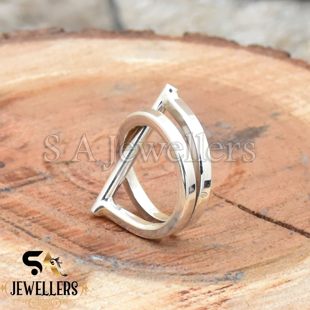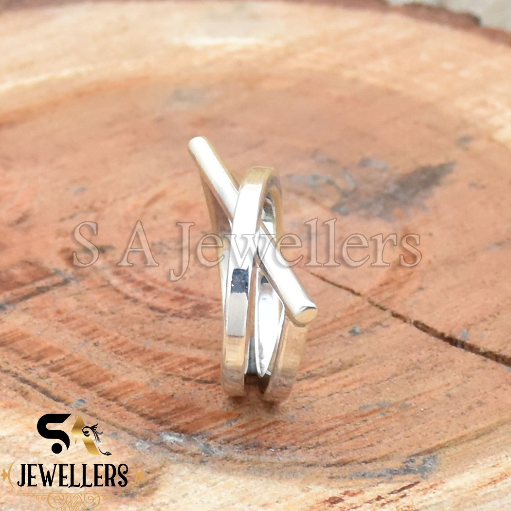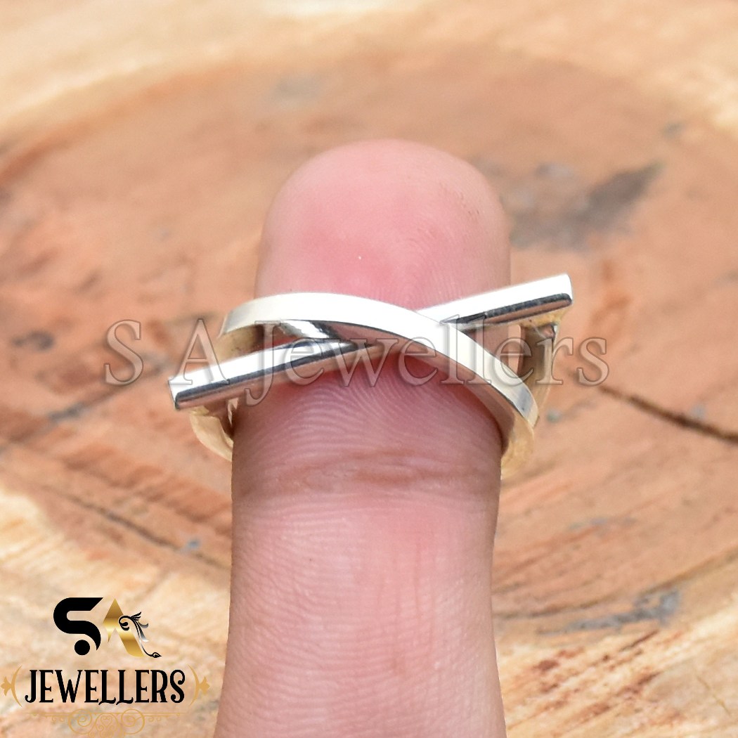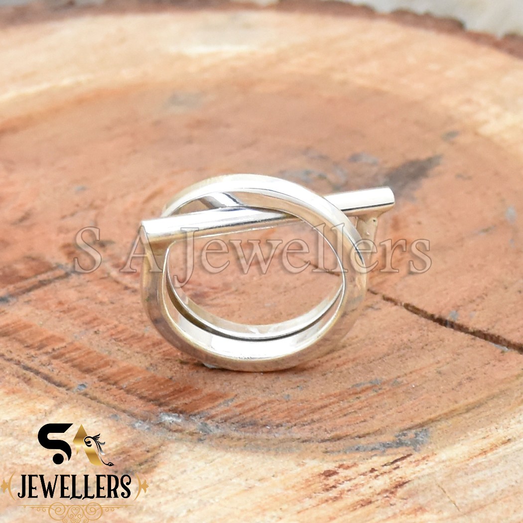925 Sterling Silver Geometric Crossover Ring, Bar and Circle Crossover Ring