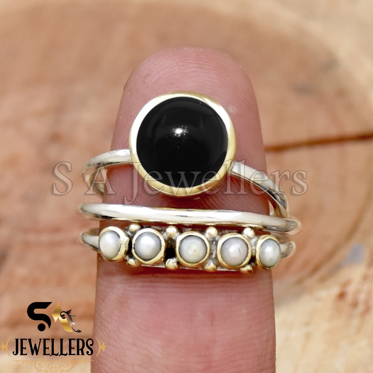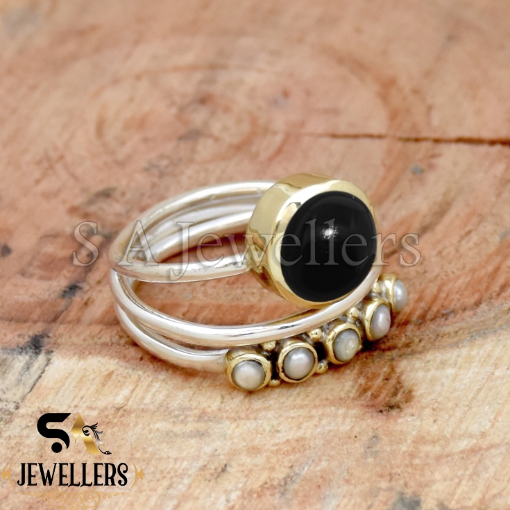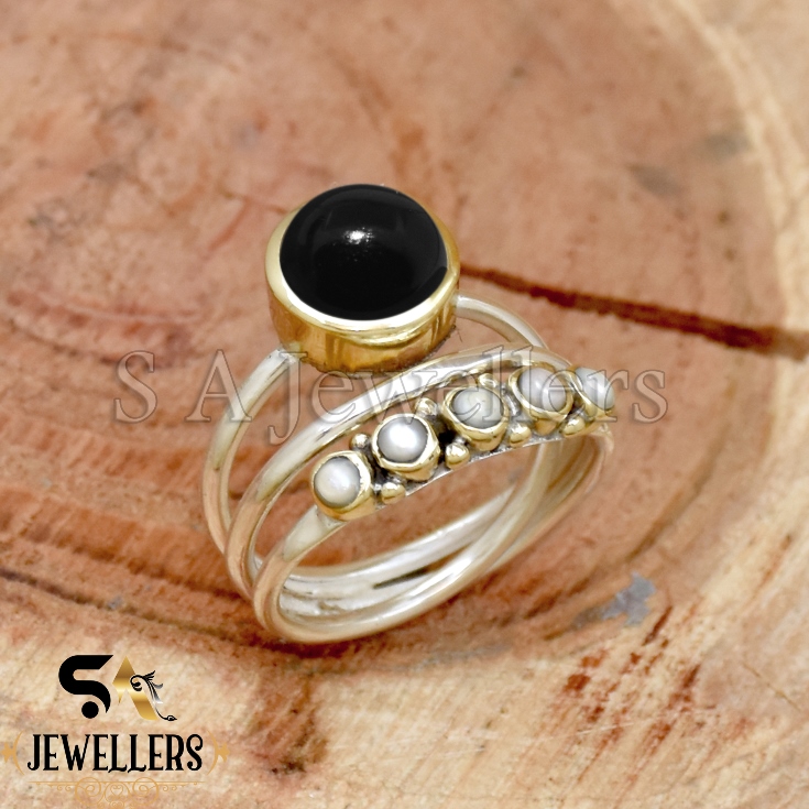 Be the first to review “Black Onyx Ring Natural Pearl Ring, Wire Wrap Ring, 925 Sterling Silver Ring”