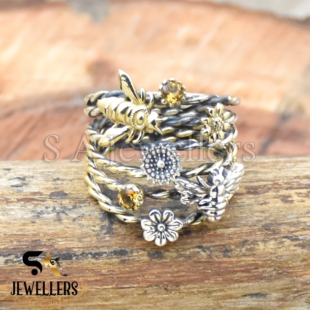 Be the first to review “Garden Stacker Ring, Flower Bee Ring, 925 Sterling Silver Ring, Two Tone Ring”