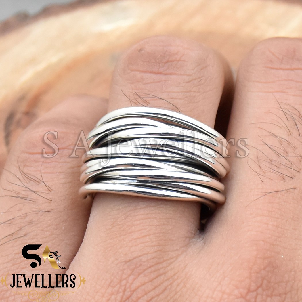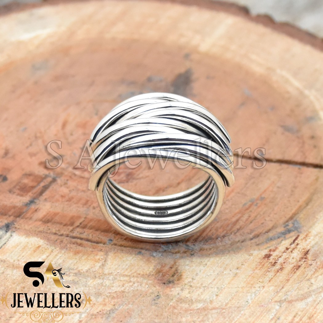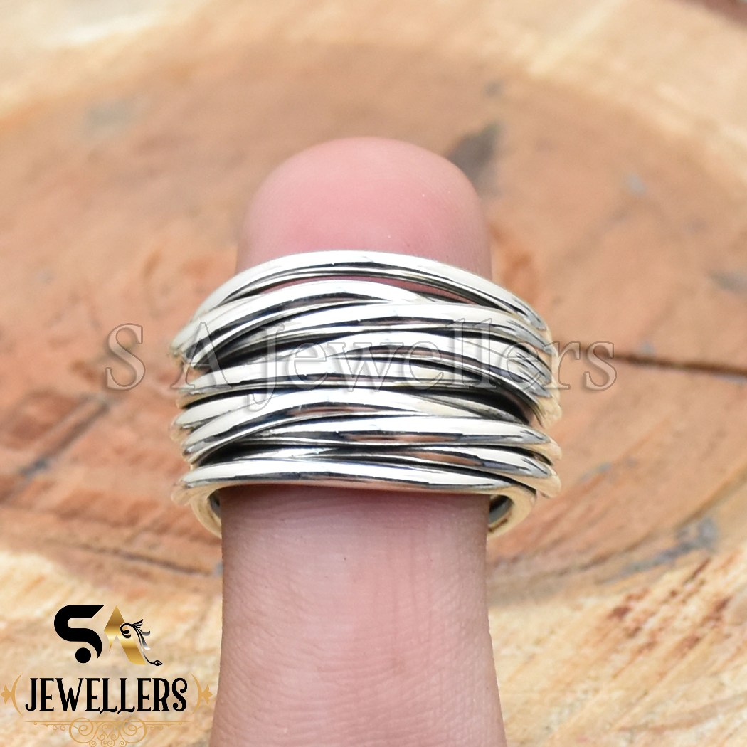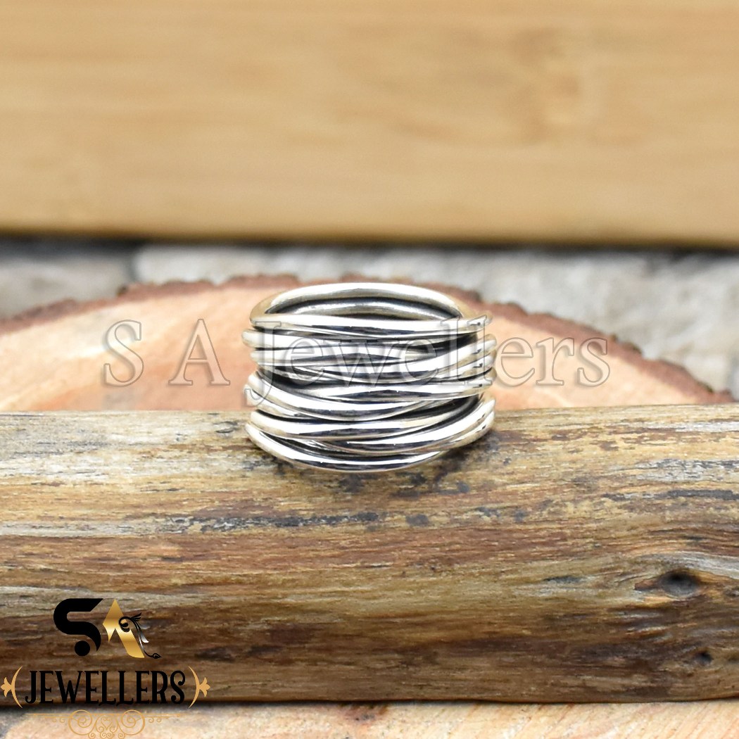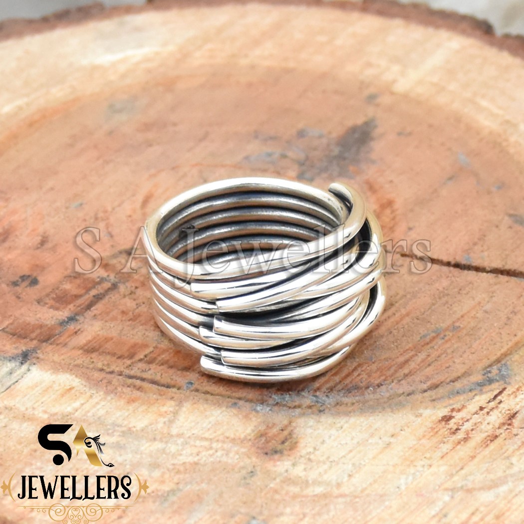Handmade Wraparound Wire Ring, 925 Sterling Silver Ring, Multi Layer Wire Ring