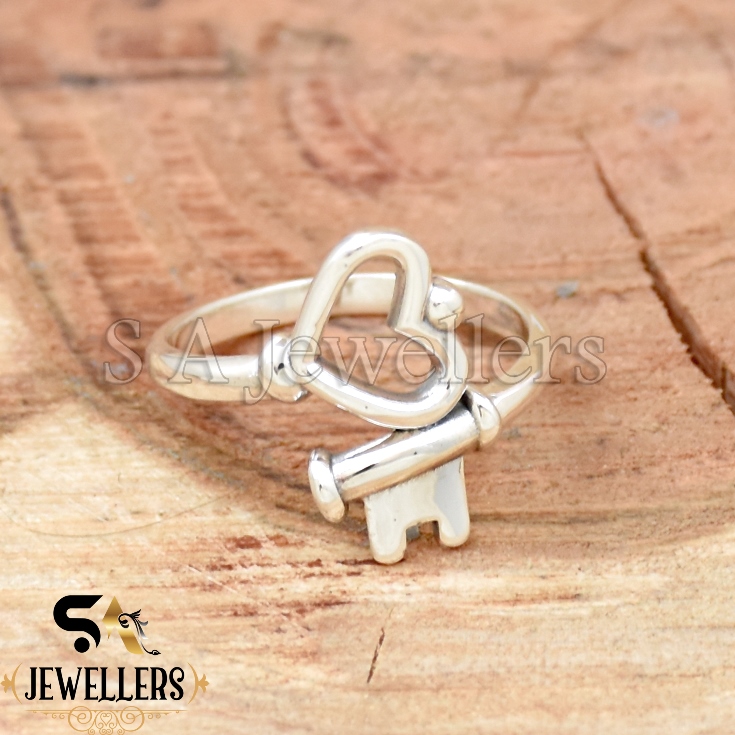 Heart Lock Key Ring, Lover’s 925 Sterling Silver Ring, Boho Ring, Handmade Ring,