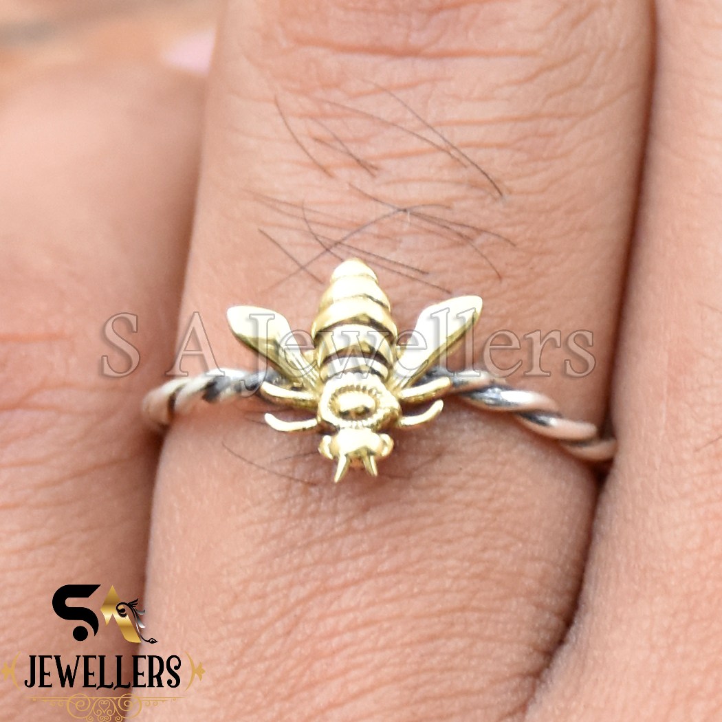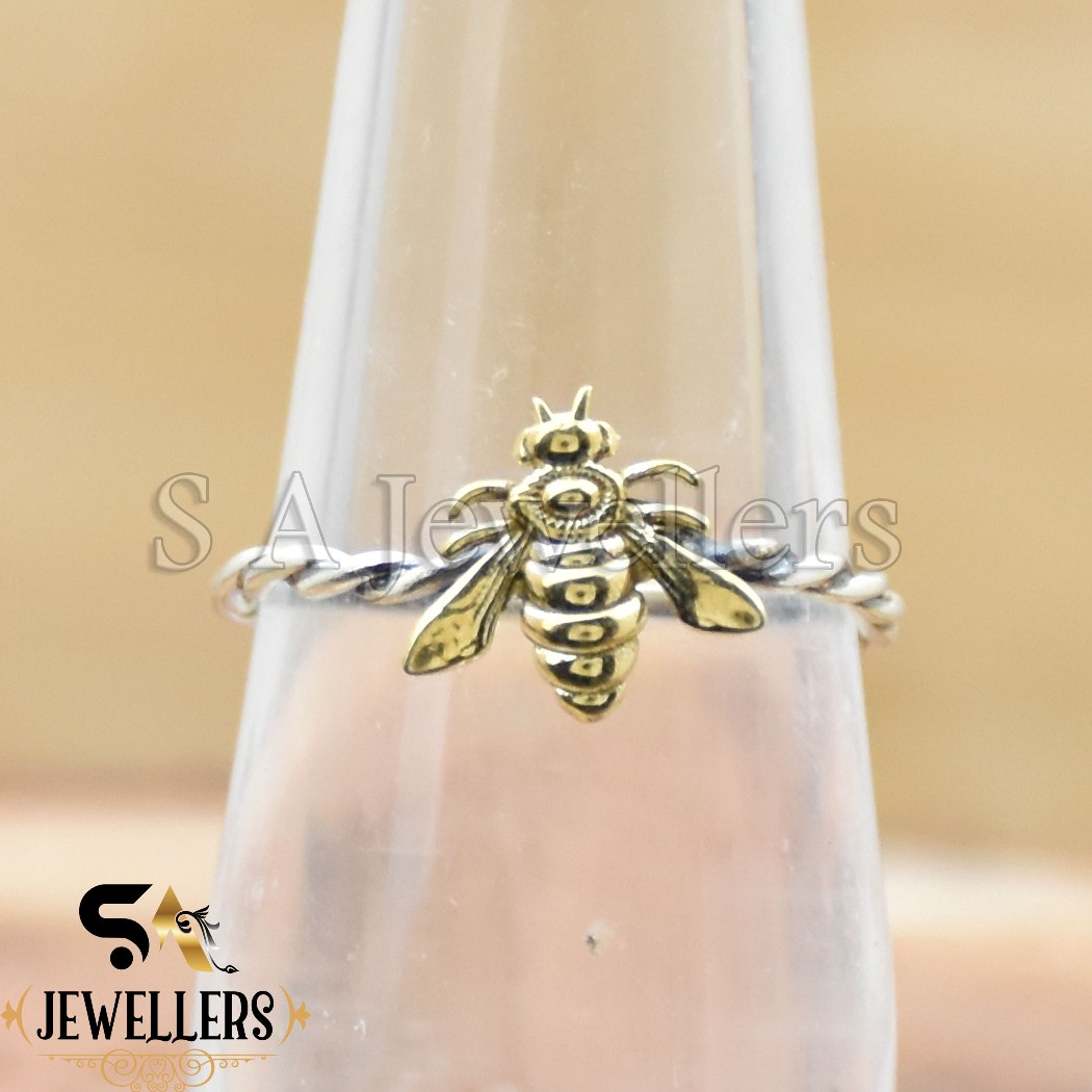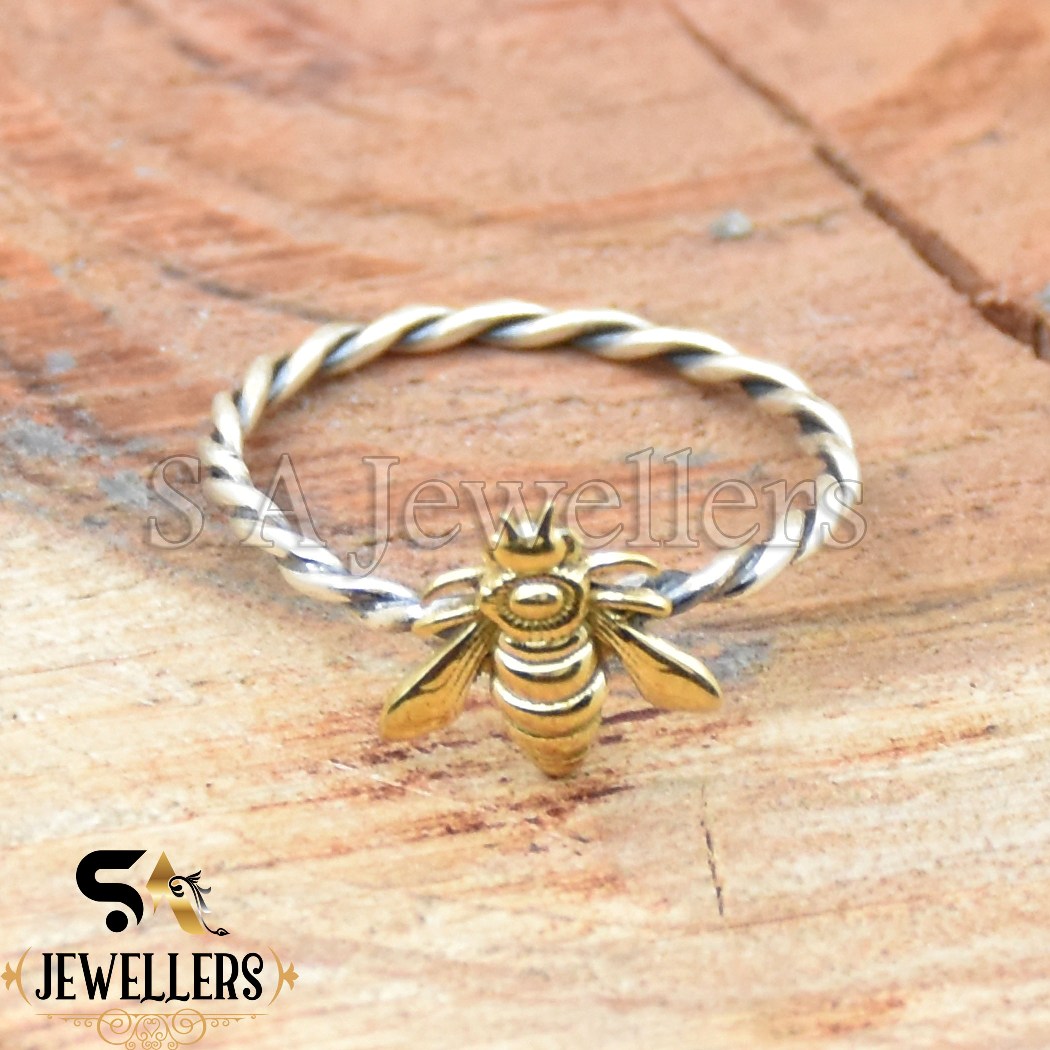 Honey Bee Stacking Ring, 925 Sterling Silver Ring, Two Tone Ring