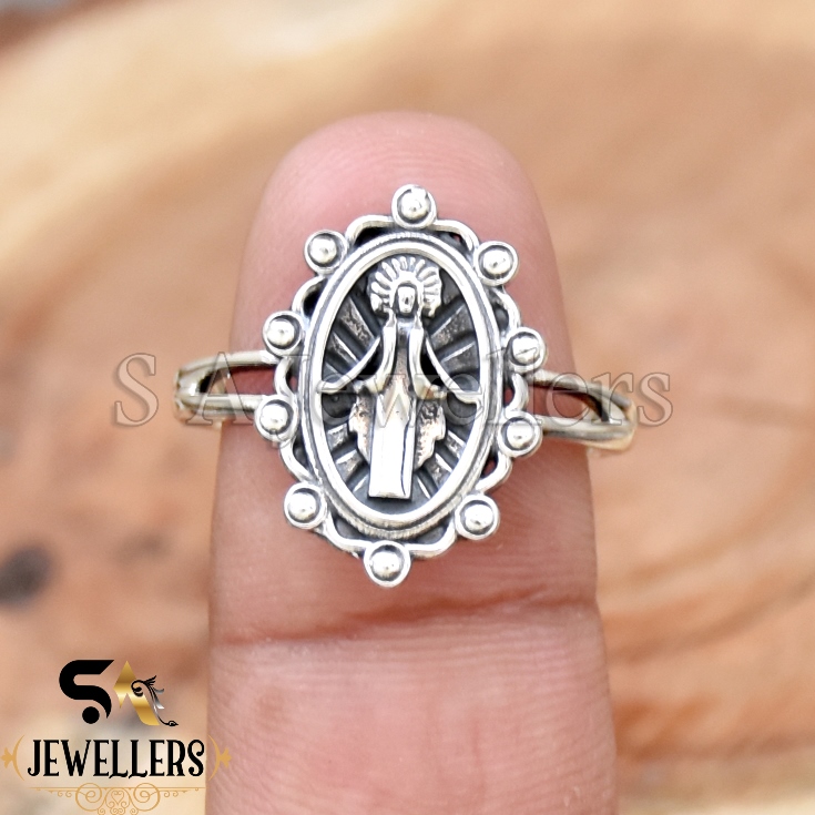 Miraculous Medal Ring, 925 Sterling Silver Miraculous Medal Ring,