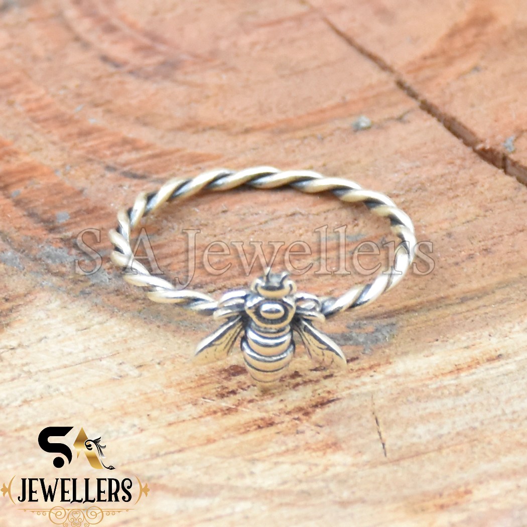 Stackable Bee Ring, Honey Bee Stacking Ring, 925 Sterling Silver Ring