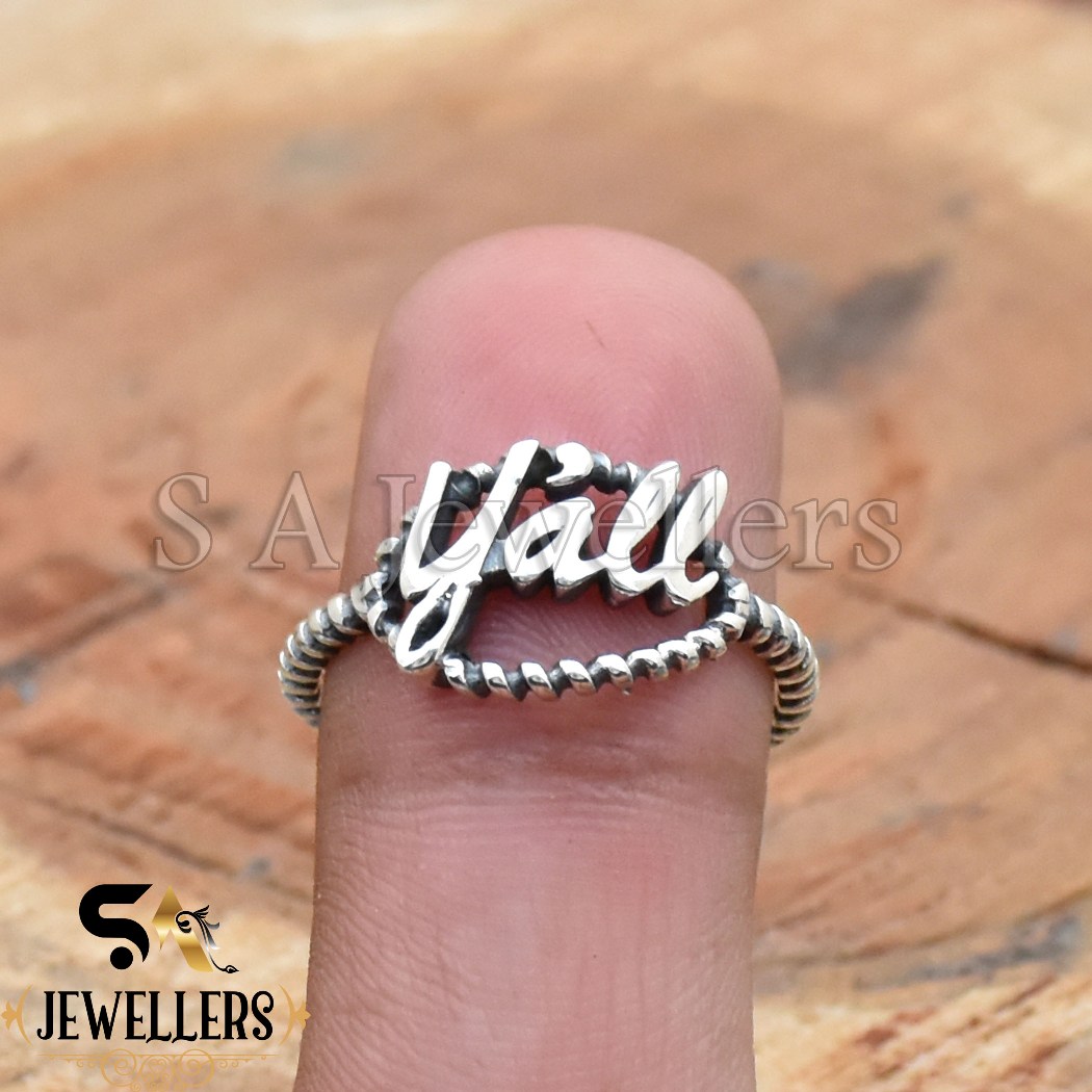 Y’all Rope Ring, 925 Sterling Silver Ring, Letters Ring, Twisted Band Ring