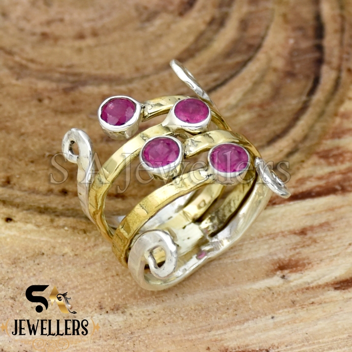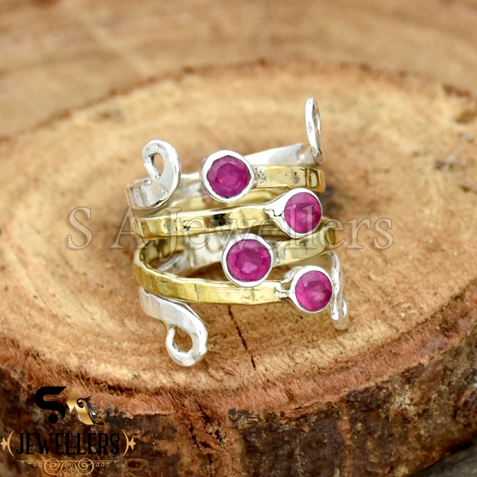 925 Sterling Silver, Indian Ruby Ring, Two Tone Ring, Band Ring for Girl’s