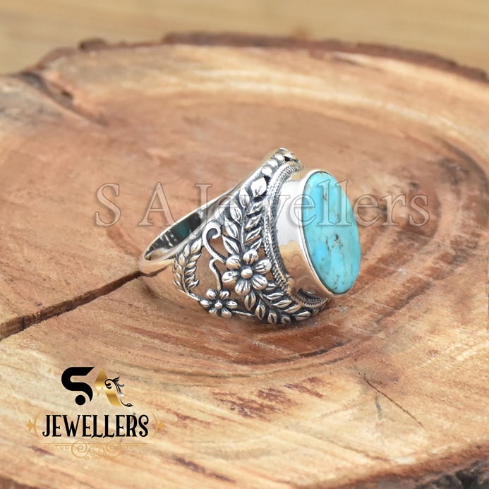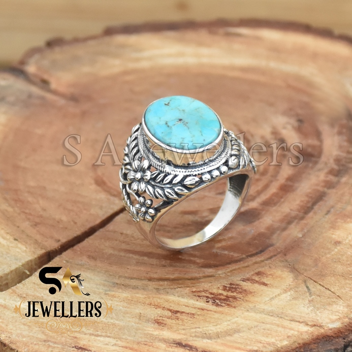 925 Sterling Silver Ring, Designer Silver Ring, Mohave Turquoise Ring, Partywear Jewelry