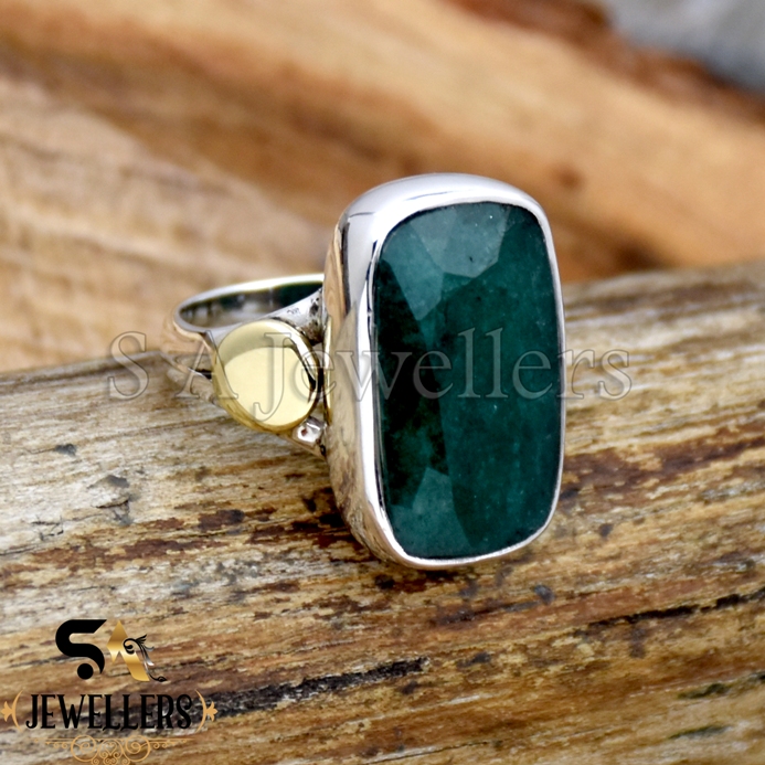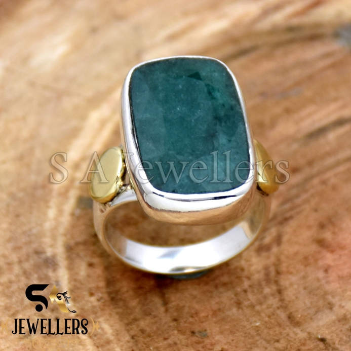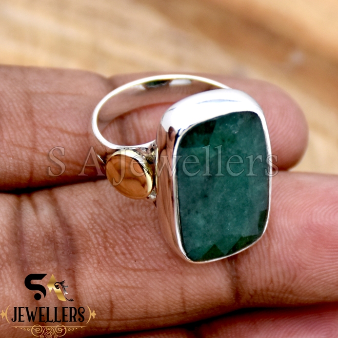Be the first to review “925 Sterling Silver Ring, Indian Emerald, Two Tone Ring, Handmade Jewelry”