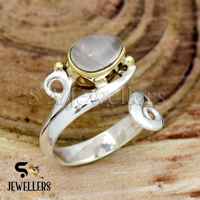 925 Sterling Silver Ring, Moonstone Silver Ring, Designer Two Tone Ring