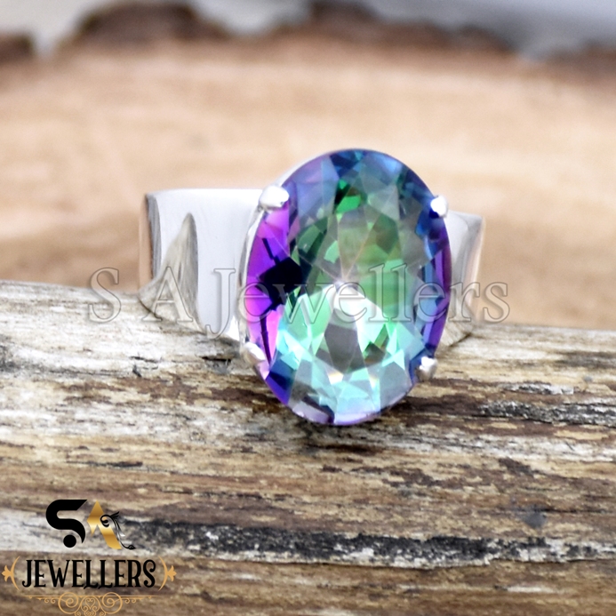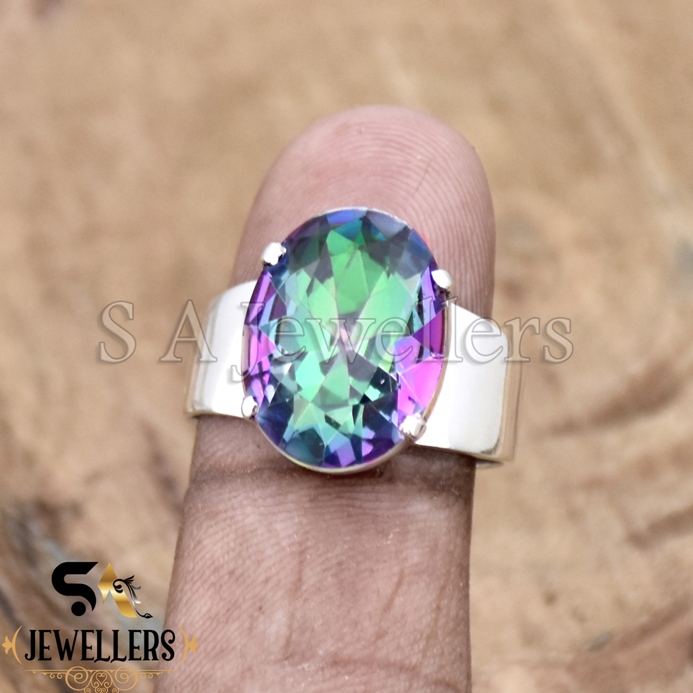 925 Sterling Silver Ring, Mystic Topaz Ring, Rainbow Gemstone, Jewelry for Girls