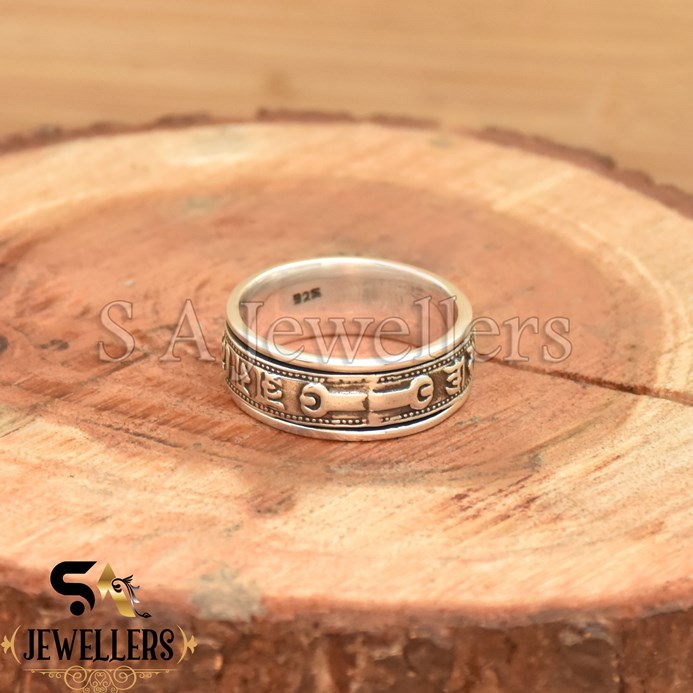 925 Sterling Silver Spinner Ring, Skull Band Ring, Thumb Ring,