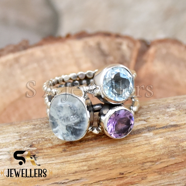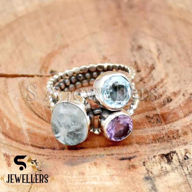 Main Stone : Aquamarine & Amethyst & Blue Topaz