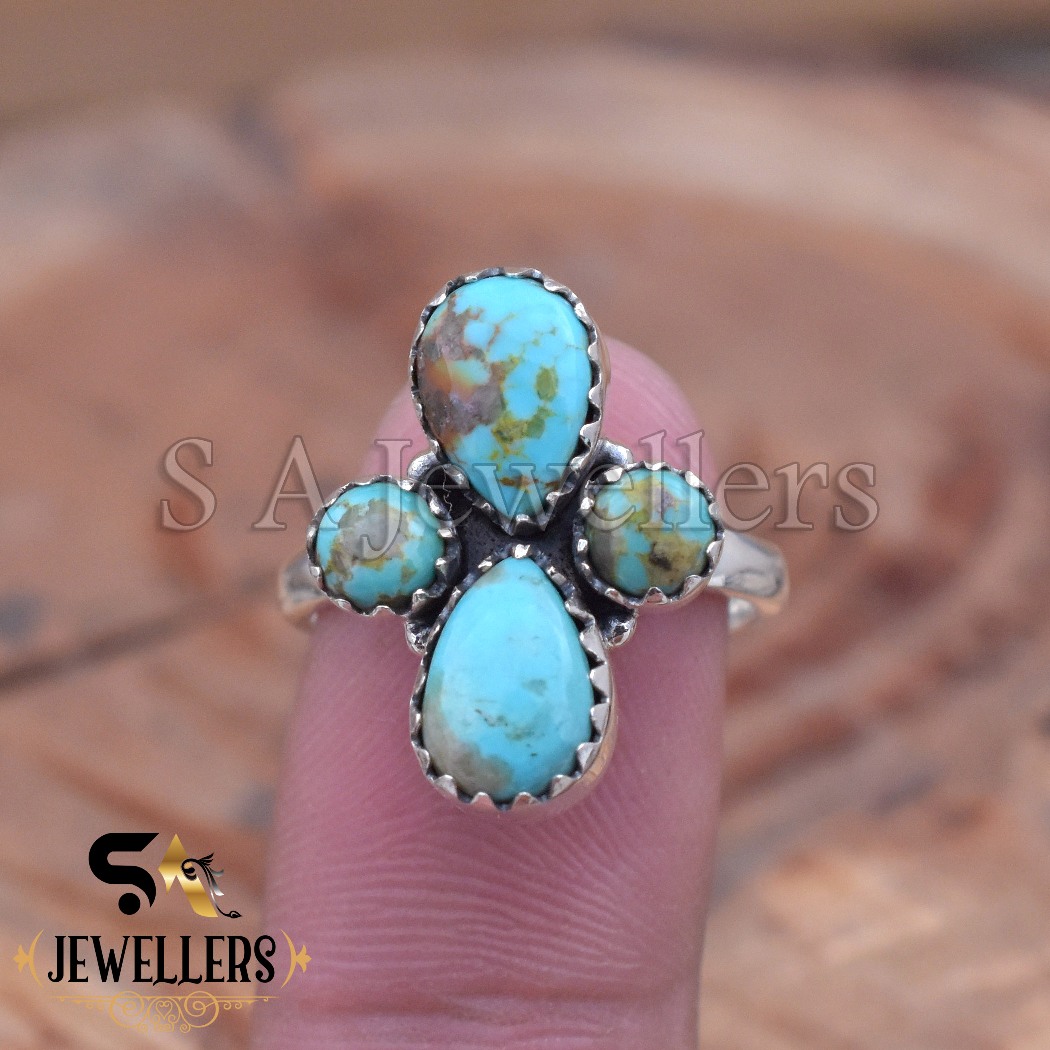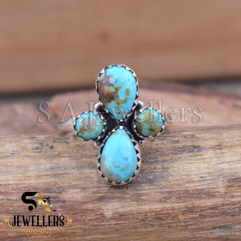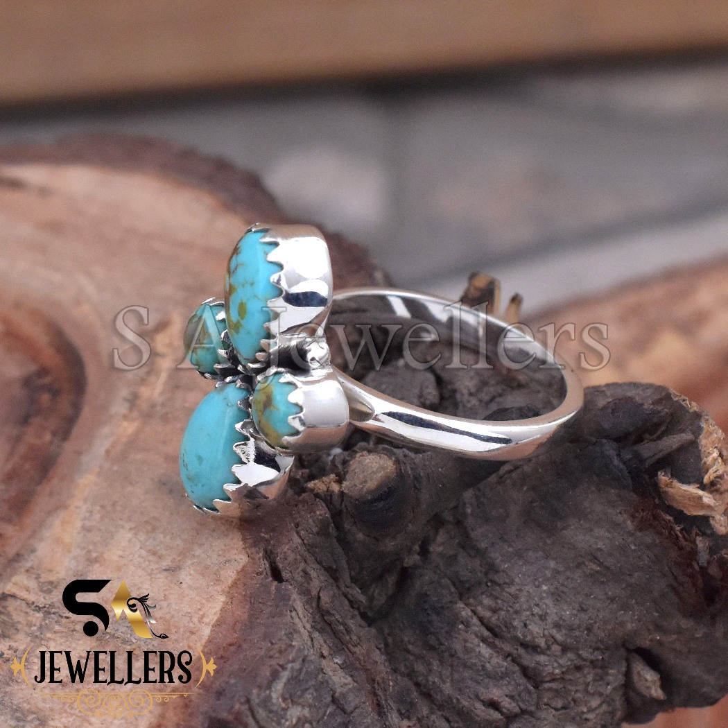 Be the first to review “Arizona Turquoise Flower Ring, Sterling Silver Multi Stone Boho Ring”