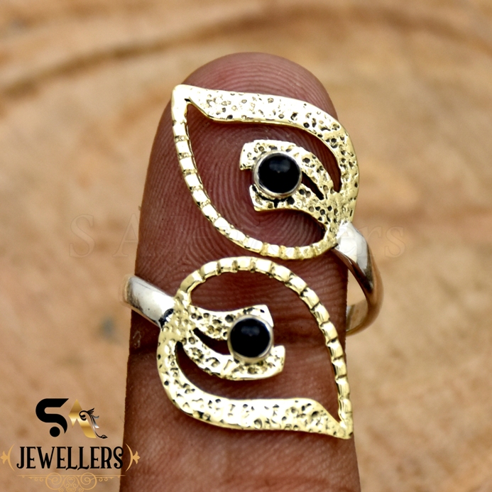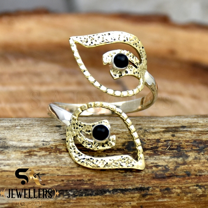Be the first to review “Black Onyx Silver Ring, 925 Sterling Silver Ring, Brass Leaf Ring, Two Tone Ring”