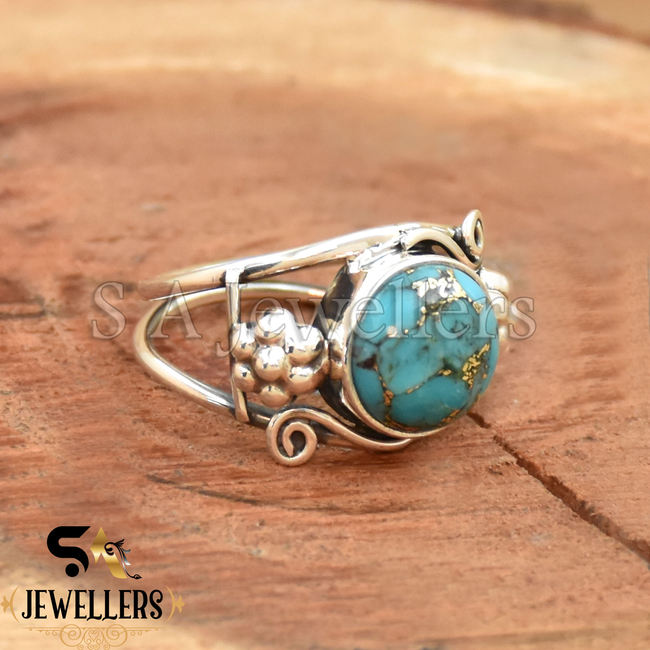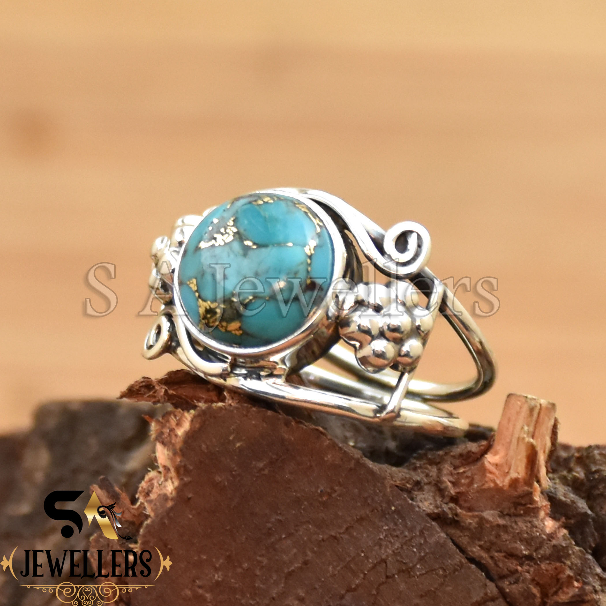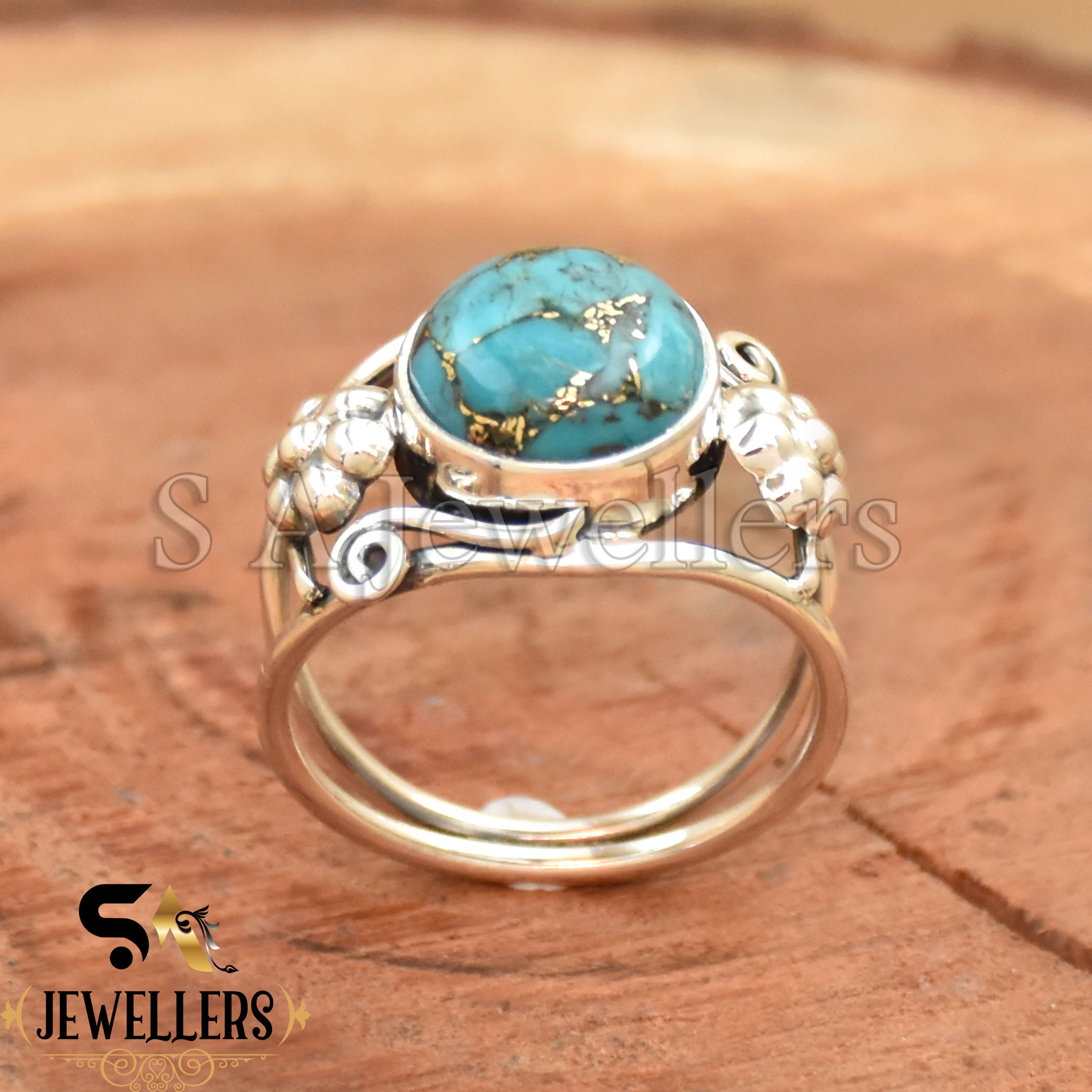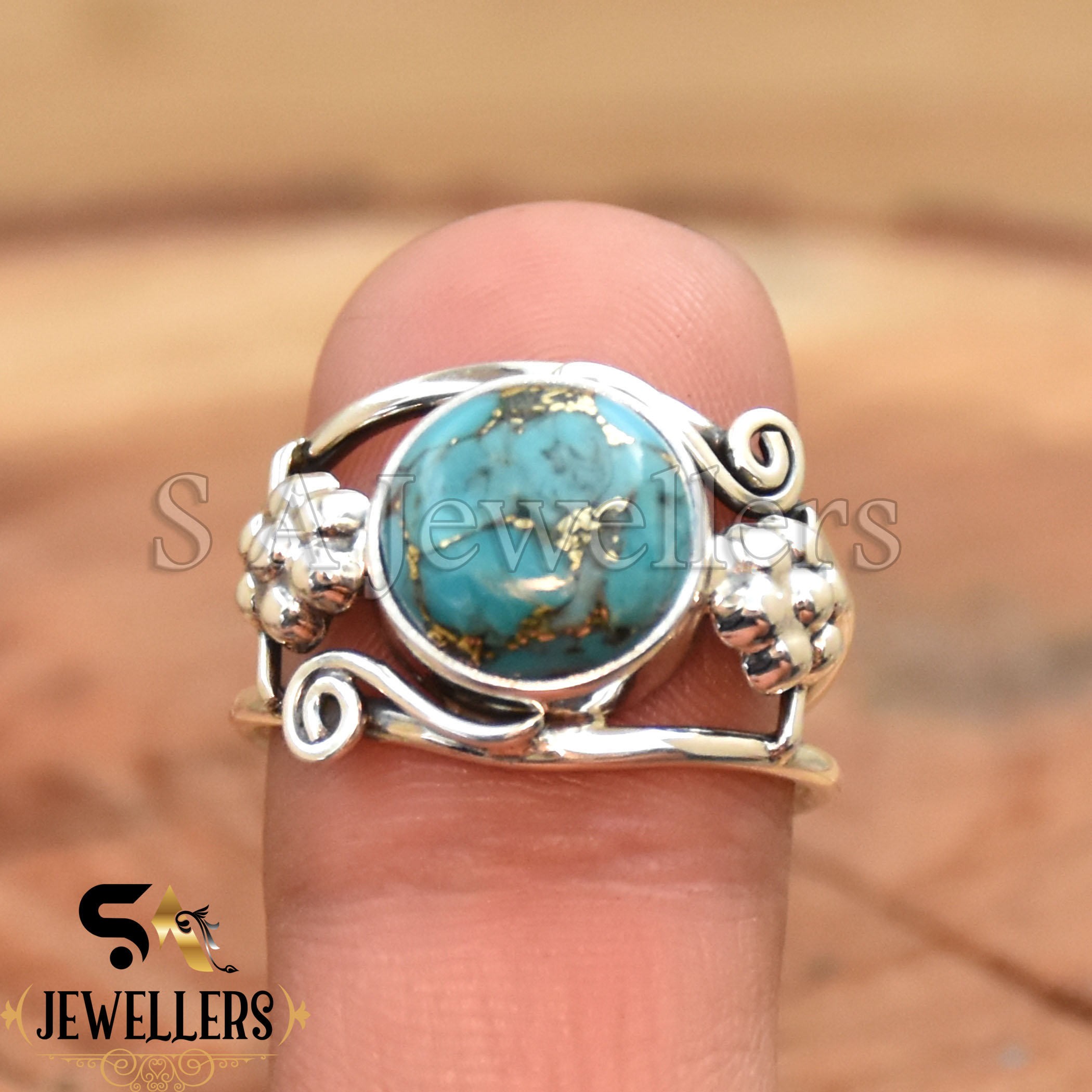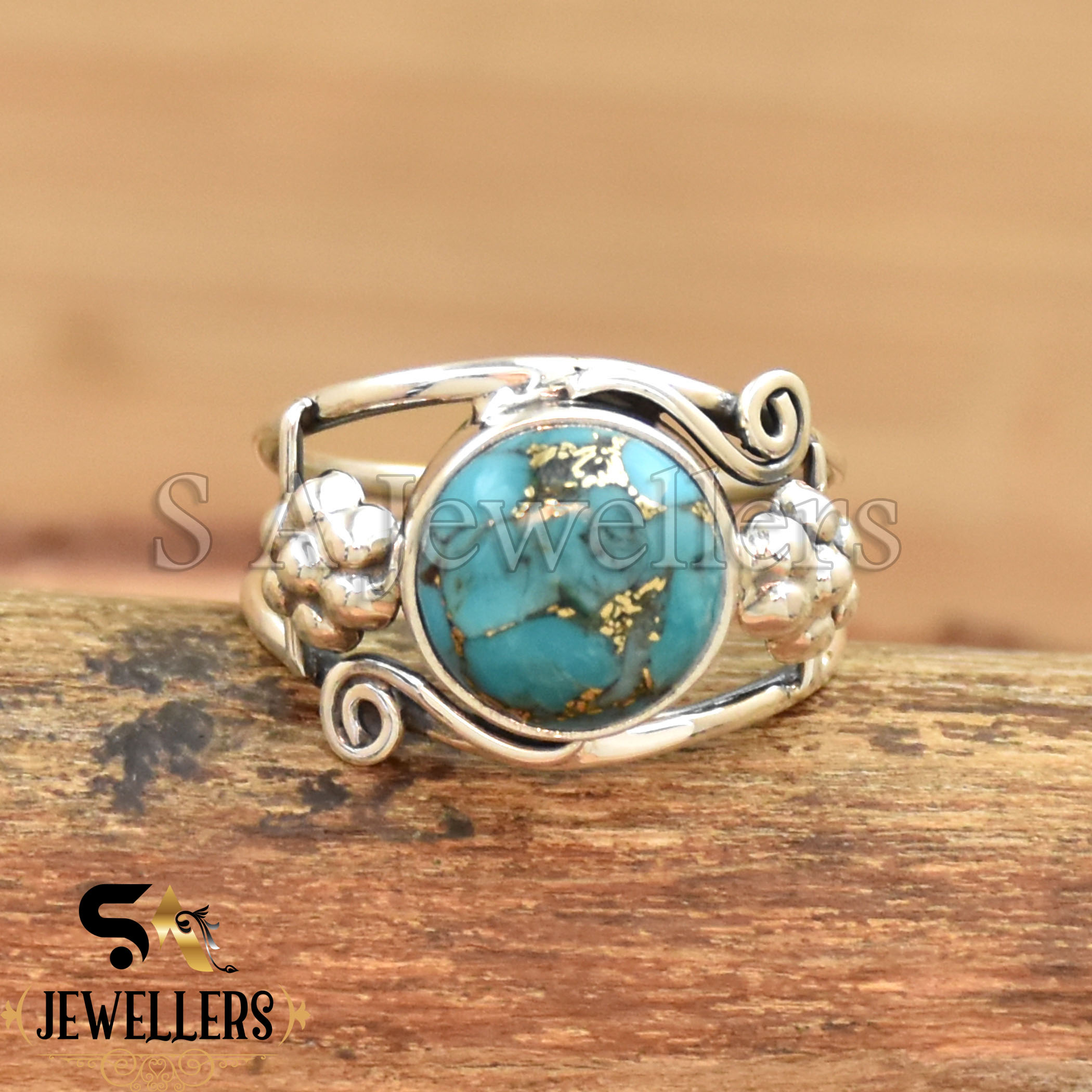 Be the first to review “Blue Copper Turquoise Ring, 925 Sterling Silver Ring, Flower Ring”