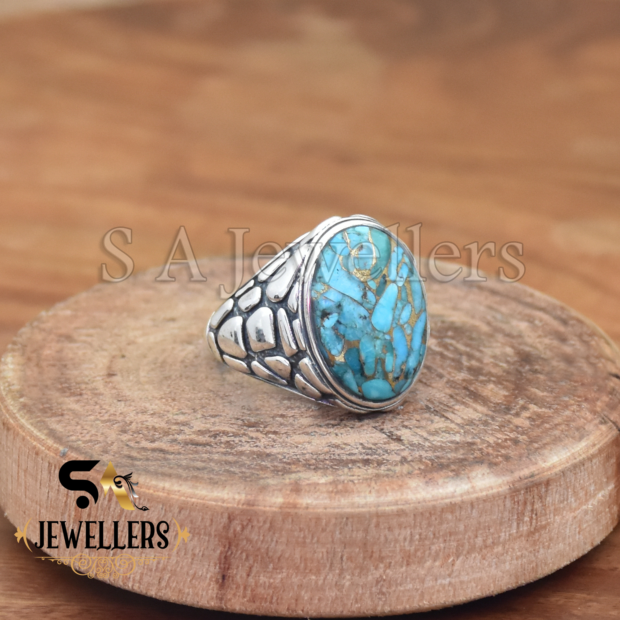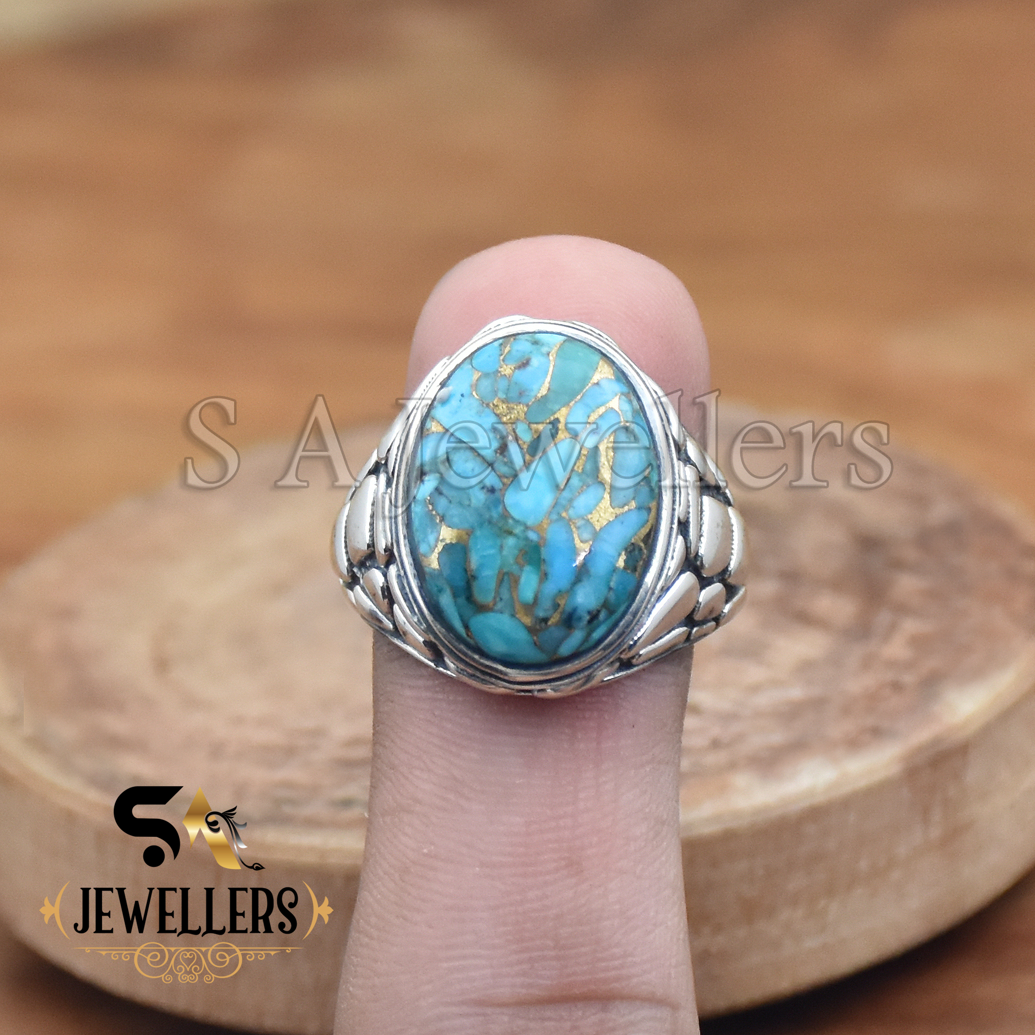 Blue Copper Turquoise Ring, 925 Sterling Silver Ring, Men’s Ring, Handmade Jewelry