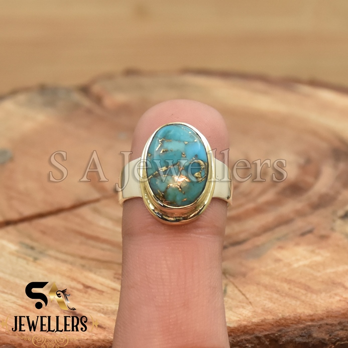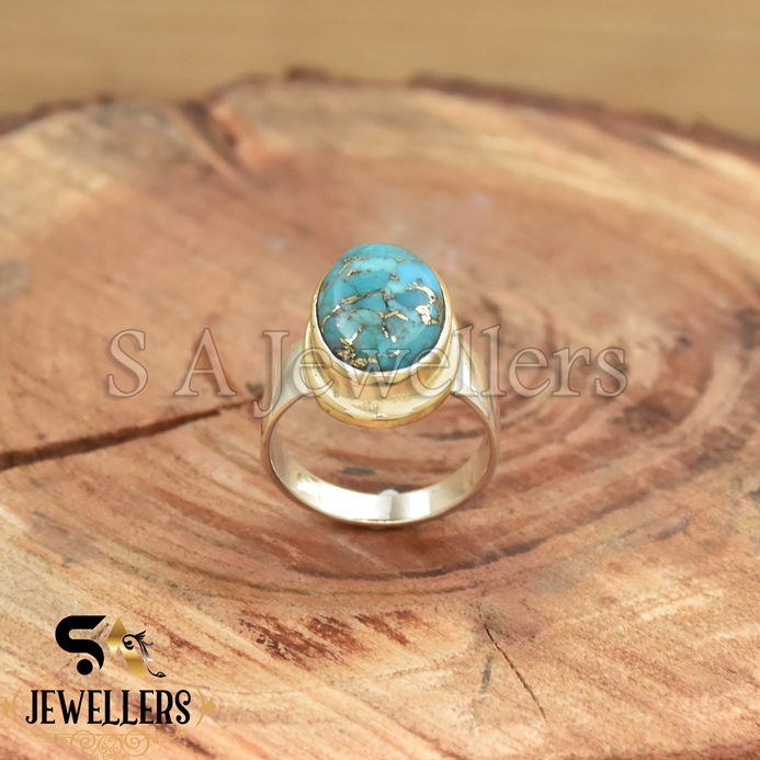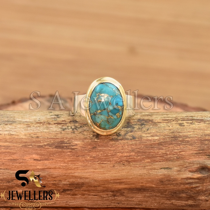 Be the first to review “Blue Copper Turquoise Ring, 925 Sterling Silver Ring, Tow Tone Ring”