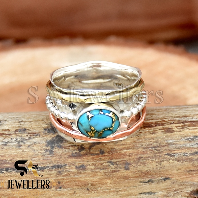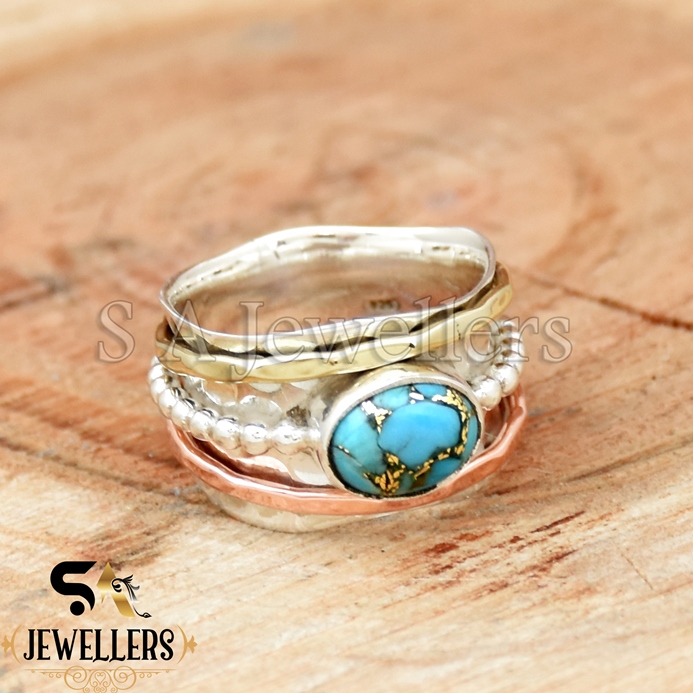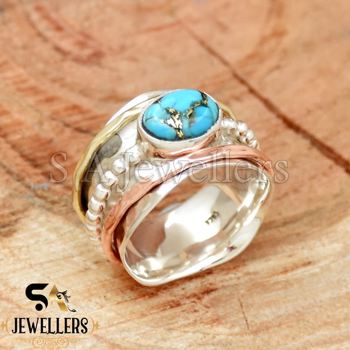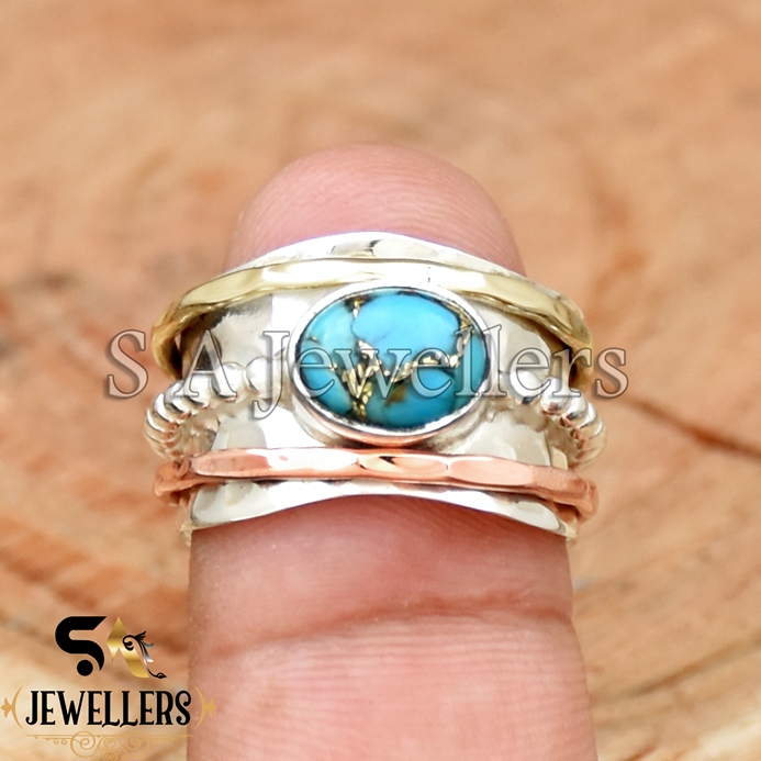 Be the first to review “Blue Copper Turquoise Ring, 925 Sterling Silver Ring, Tow Tone Ring”