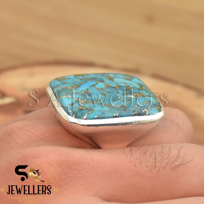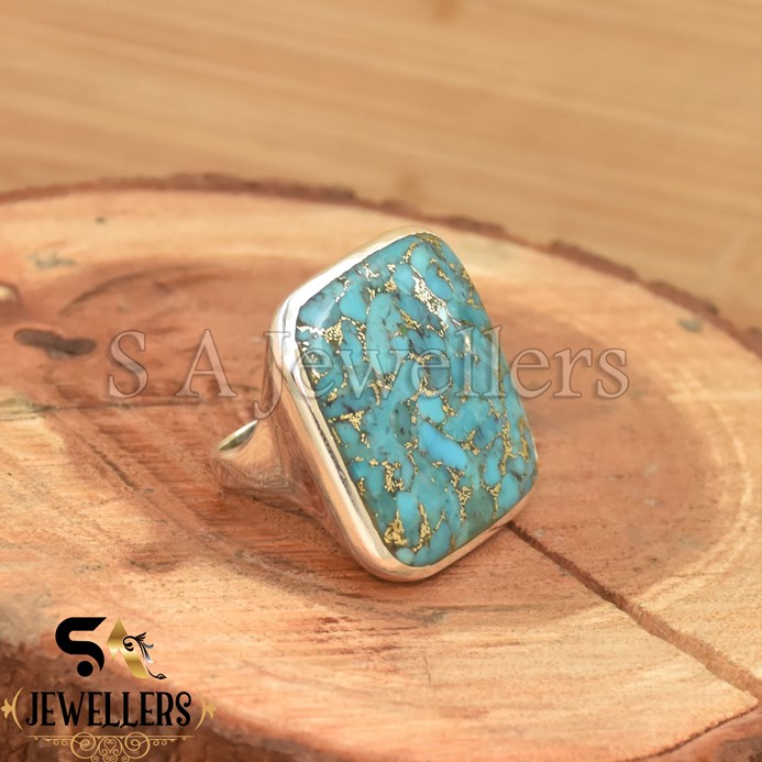 Blue Copper Turquoises Ring, 925 Sterling Silver Ring, Handmade Ring