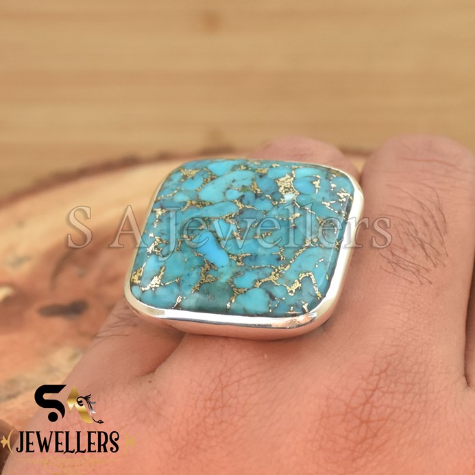Be the first to review “Blue Copper Turquoises Ring, 925 Sterling Silver Ring, Handmade Ring”