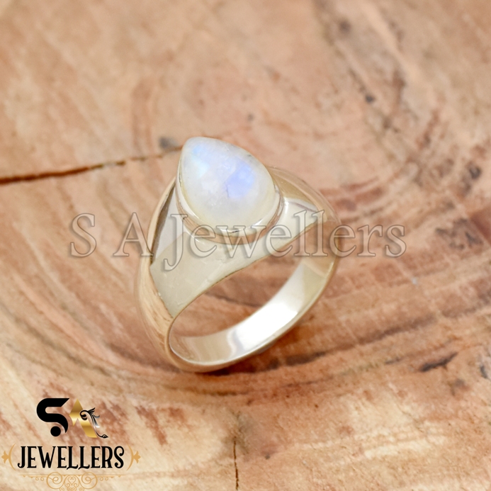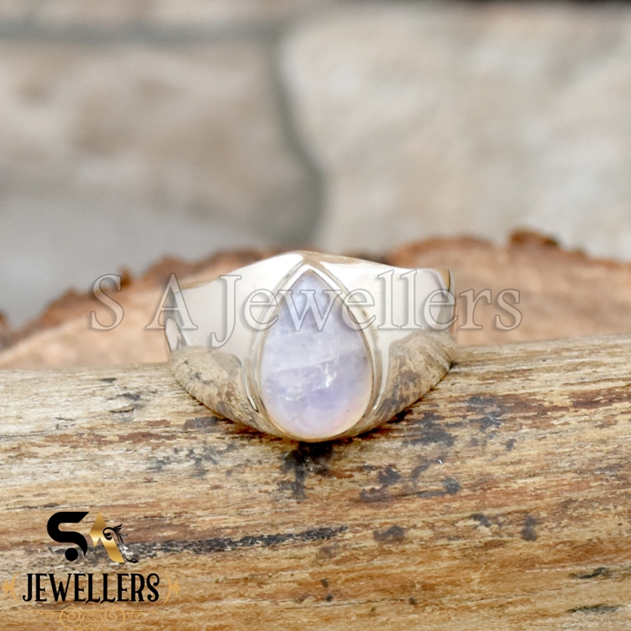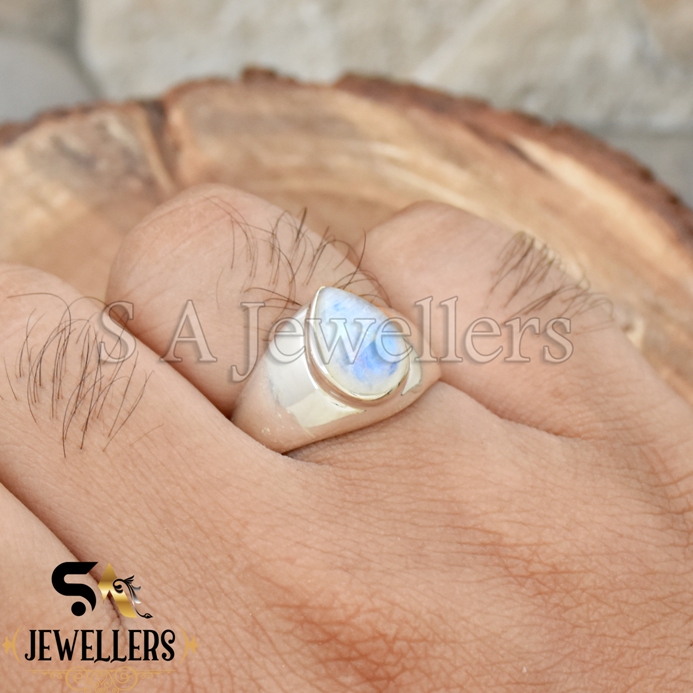 Blue Moonstone Cabochon Statement Ring, 925 Starling Silver Men’s Ring