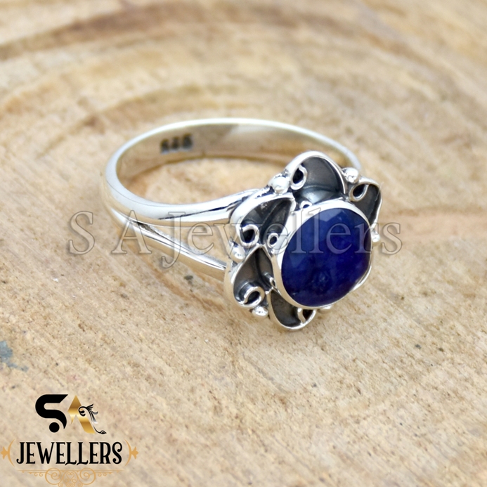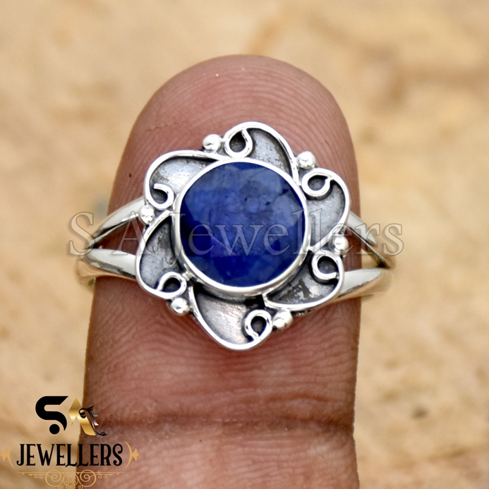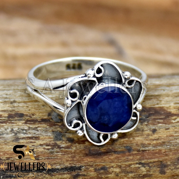 Be the first to review “Blue Sapphire Ring, Oxidized Flower Ring, 925 Sterling Silver, Gift For Her”
