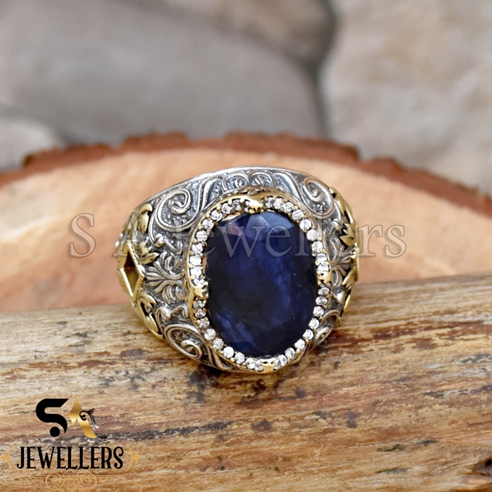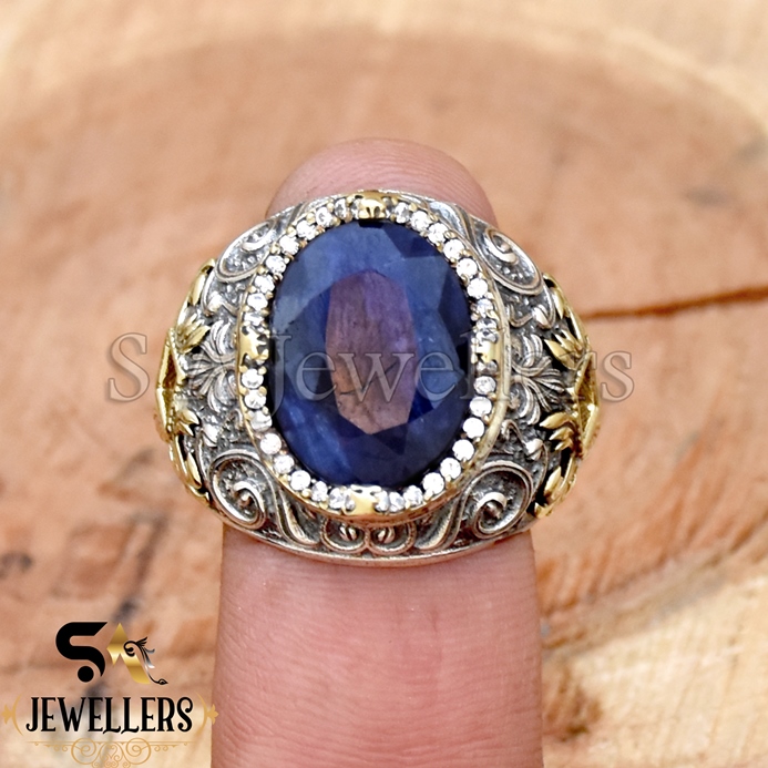 Be the first to review “Blue Sapphire With White Zircon Ring, 925 Sterling Silver Ring, Tow Tone Ring”