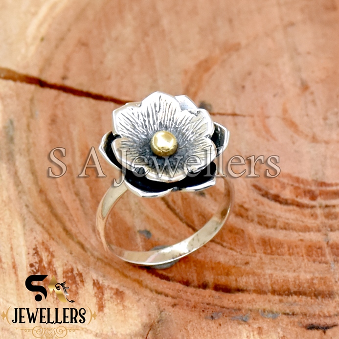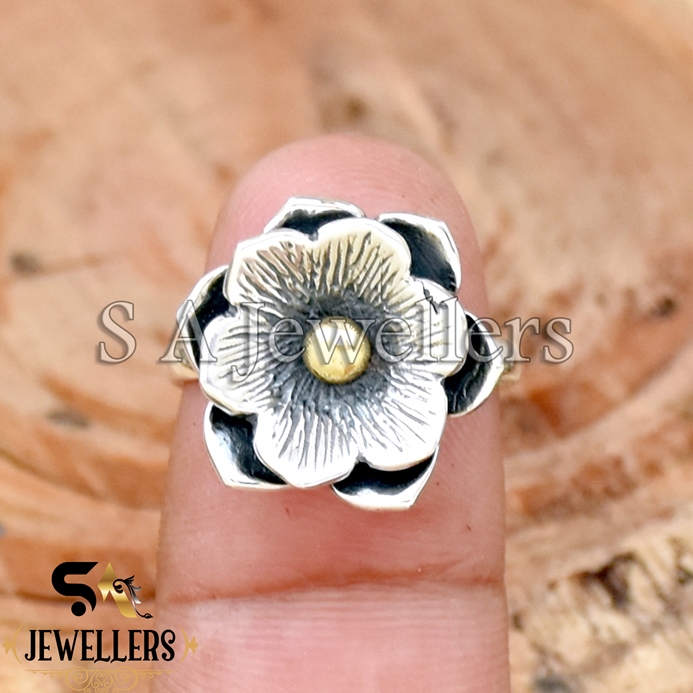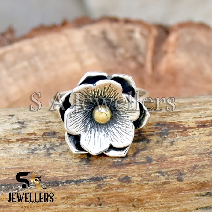 Flower 925 Sterling Silver Ring, Tow Tone Ring, Handmade Jewelry