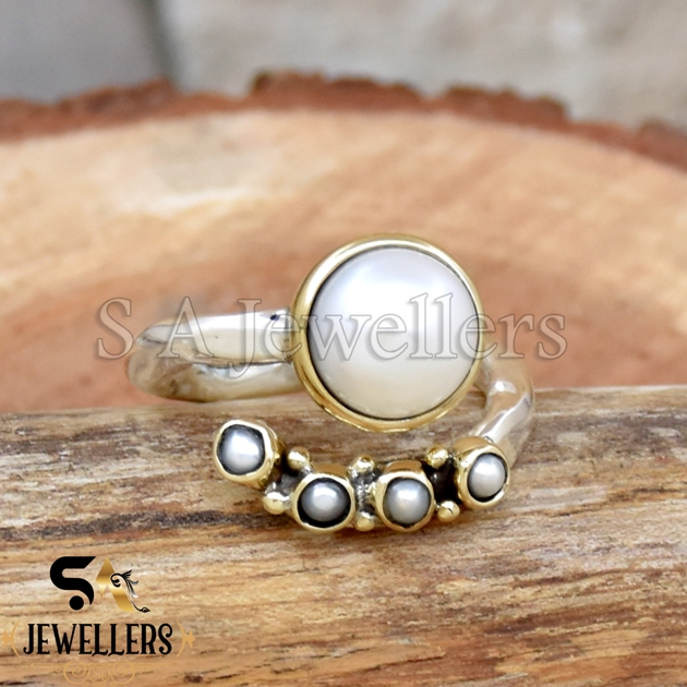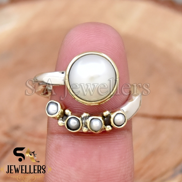 Fresh Water Pearl Ring, 925 Sterling Silver Ring, Tow Tone Ring
