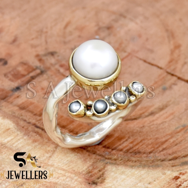 Be the first to review “Fresh Water Pearl Ring, 925 Sterling Silver Ring, Tow Tone Ring”