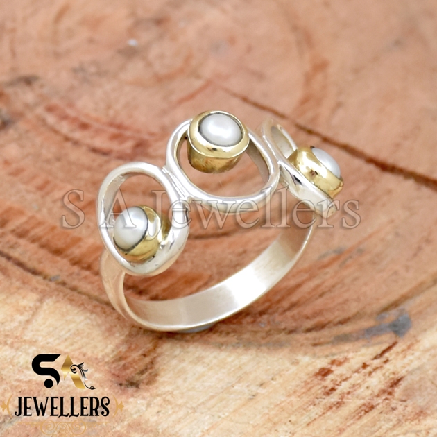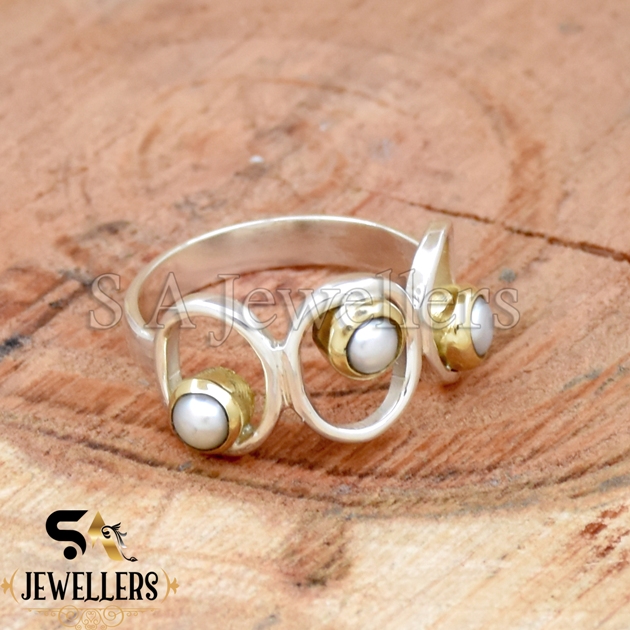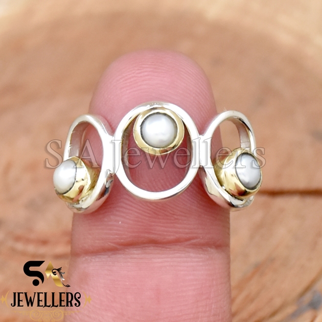 Fresh Water Pearl Ring, 925 Sterling Silver Ring, Tow Tone Ring