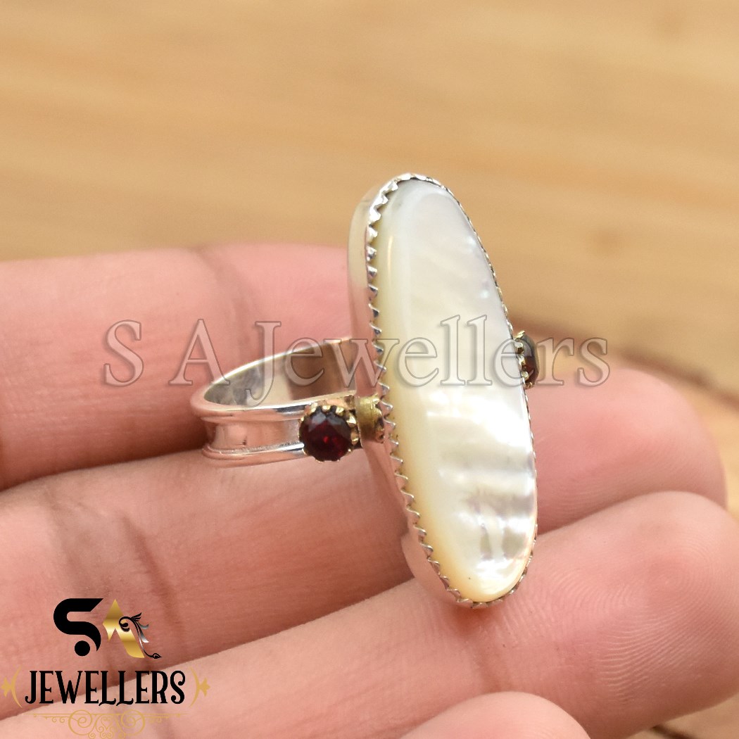 Fresh Water Pearl Ring, Garnet Ring, 925 Sterling Silver Ring,